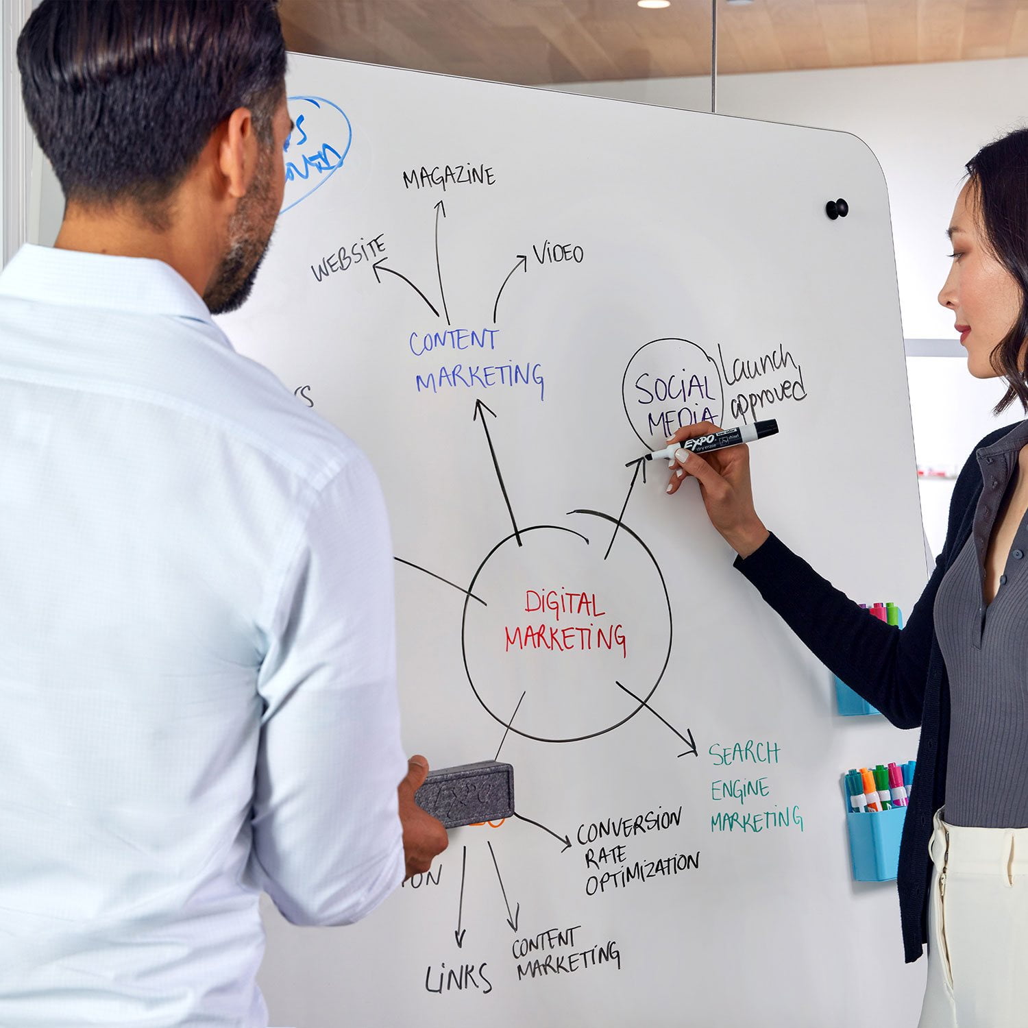 Expo® Dry Erase Markers, Assorted Colors, Pack of 18 are an excellent option for a variety of situations. Open a case today and experience the bright, vivid colors.