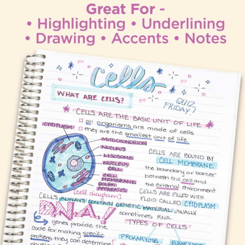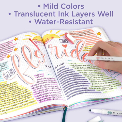Zebra’s Mildliner is the ideal choice for bullet journaling, scrapbooking, highlighting, scheduling, study notes and other creative applications. From elaborate titles and task lists to calendars, monthly goals, and mood trackers, the Mildliner highlighter set will enhance your page designs and allow you to create your artistic project exactly the way you envisioned it. You can plan on your art lasting as well, with acid free, archival quality ink.