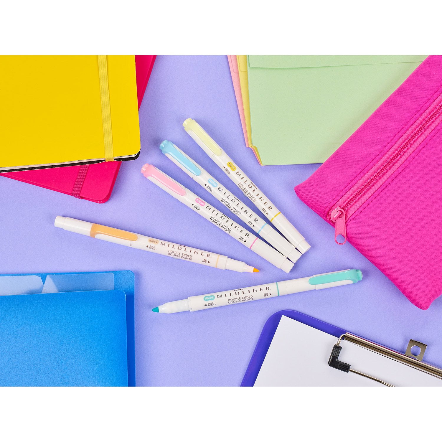 Featuring the softly colored Zebra Mildliner, perfect for the times when you want to highlight something without overwhelming everything else on the page. The mildliner is housed in a white barrel with minimal, clean design and a convenient pocket clip, the double-ended Mildliner features a broad chisel tip that allows for thick strokes and a fine point tip that provides more consistent lines. The water-resistant pigment ink delivers unique colors which show up softly on paper and are excellent for layering or blending. Stimulate creativity with this versatile and lovely tool.