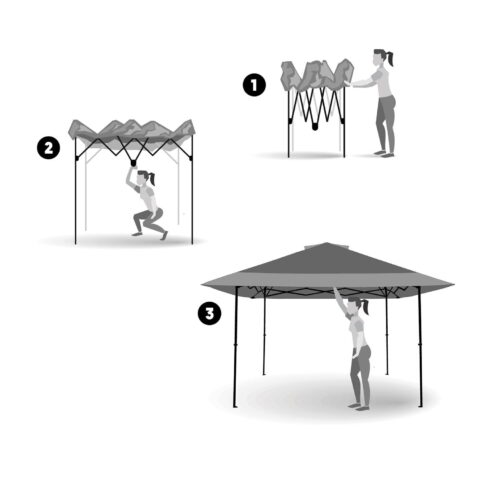 Experience the convenience of the Member’s Mark 13’x13′ Instant Canopy. Designed with extended eaves, this canopy provides an additional 75 sq.ft. of shade compared to a standard 10’x10′ straight leg canopy. It’s perfect for larger gatherings where quick and cool shade is needed. The patented EasyLift™️ Technology ensures a quick and easy setup, whether you’re one person or two. Simply open up the frame, push up on the center hub, push down on the extended eaves arms, and extend the legs for a quick and easy setup.