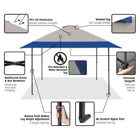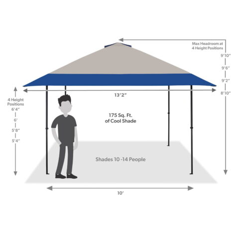 • Patented EasyLift™ Design allows for instant set-up by 1 or 2 people, providing 175 sq. ft. of shade to cool 8 to 12 people