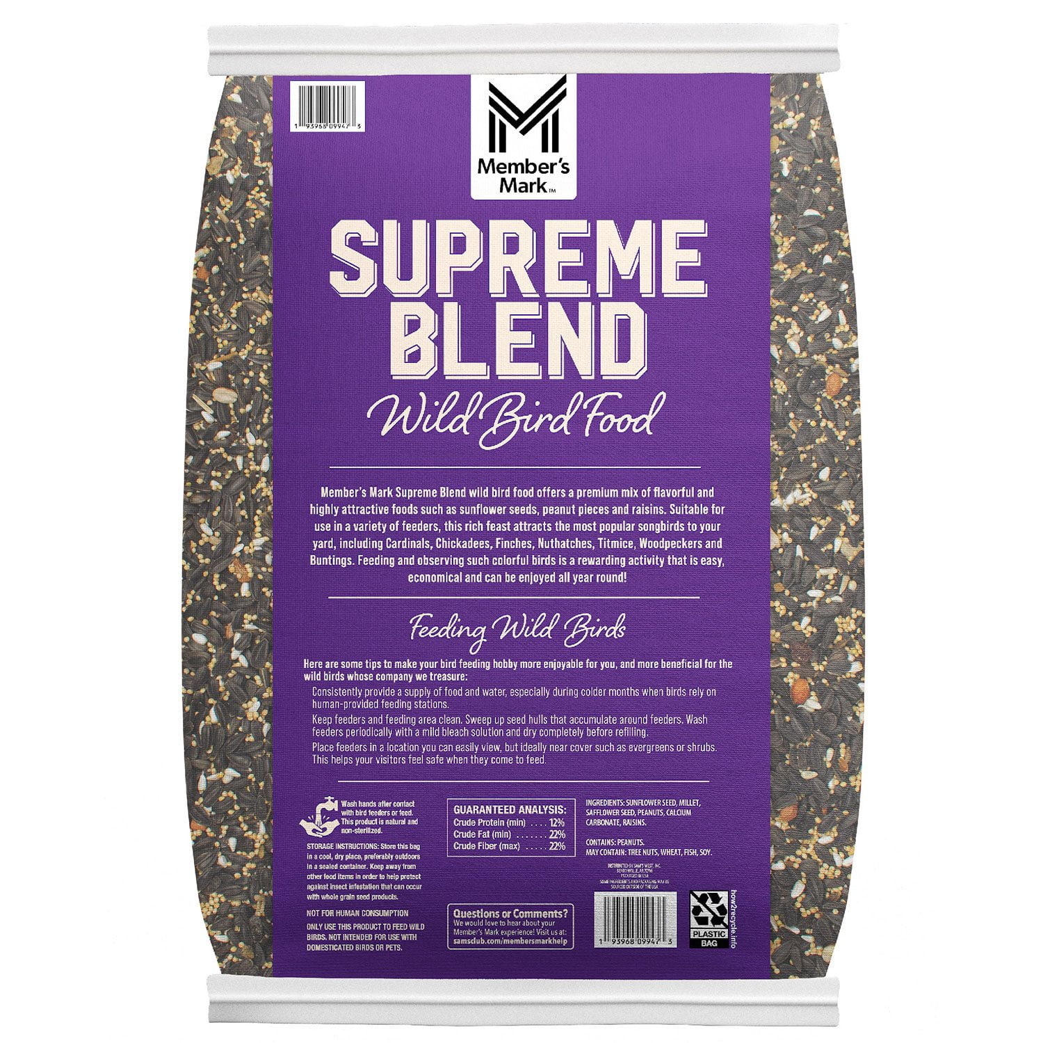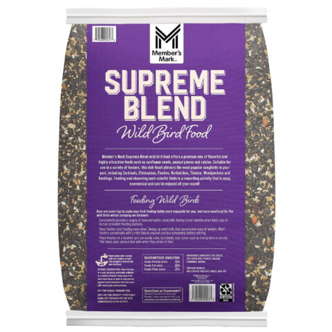 Songbirds are sure to flock your feeder when using Member’s Mark Supreme Blend Wild Bird Food. Without all the fillers found in other bird food, the birds in your area can fill up and stay healthy with your assistance. Fill up the feeder each day to see what new species of birds come to visit and share their songs. Feeding birds is a great way to learn about and appreciate the differences in all types of birds–all year long.