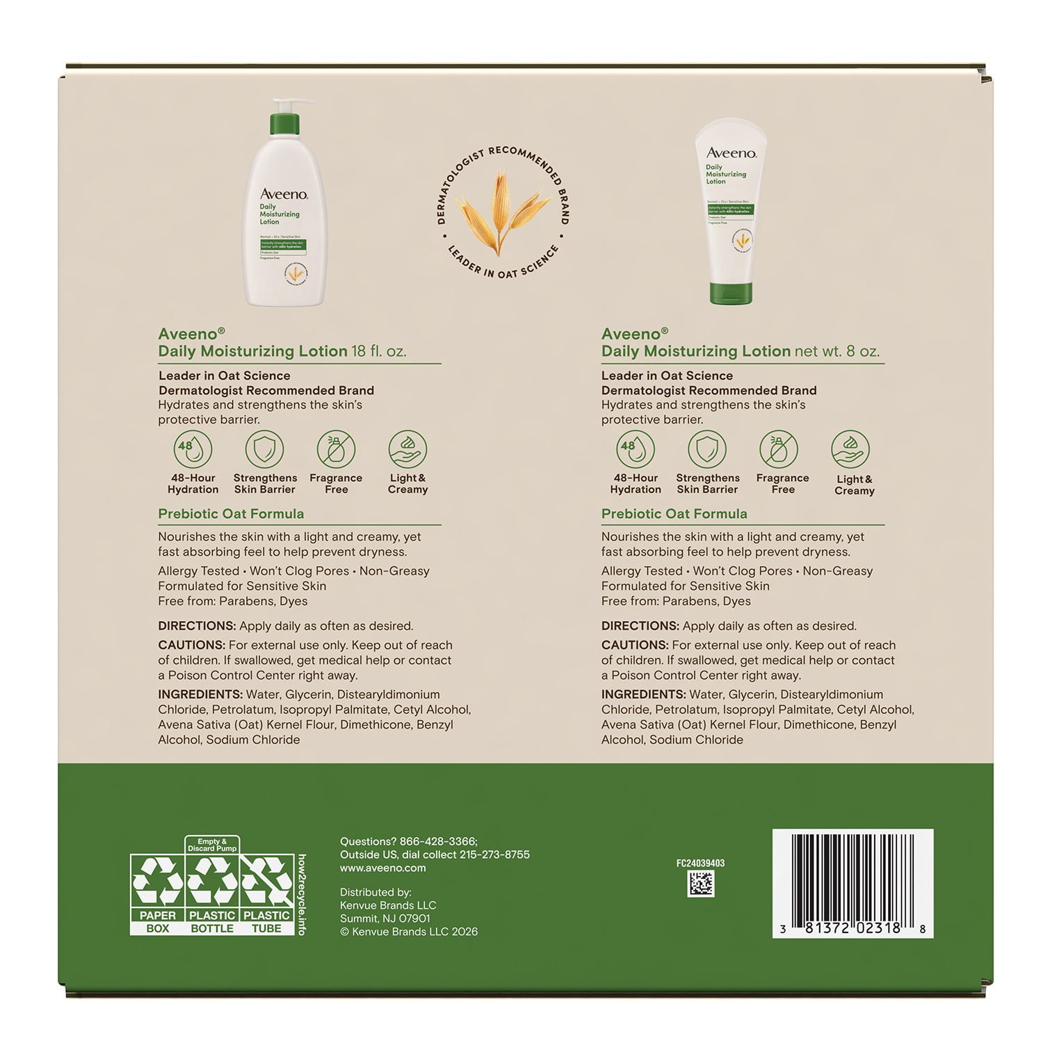 Aveeno Daily Moisturizing Body Lotion with Prebiotic Oat formula intensely nourishes dry skin. Formulated with a soothing prebiotic oat, the fragrance-free lotion has been clinically proven to moisturize for up to 24 hours. This daily body lotion nourishes and helps replenish skin’s natural moisture barrier. The unique prebiotic oat formula absorbs quickly and nourishes dry skin with moisture, leaving your skin soft, beautiful and healthy-looking.