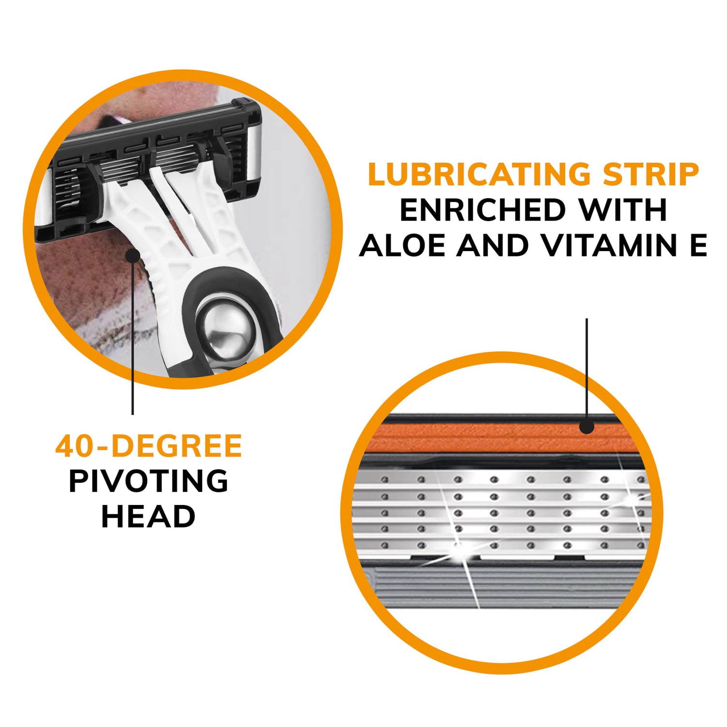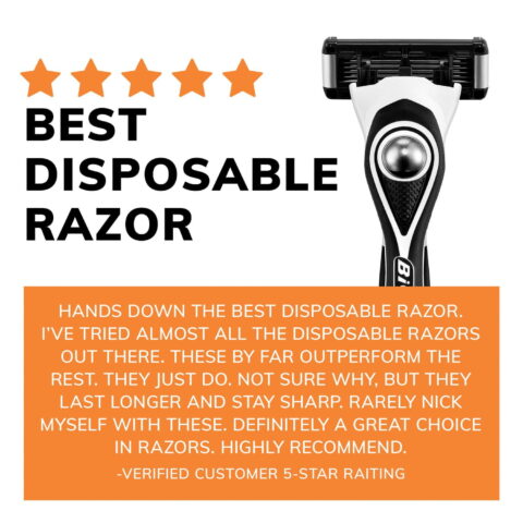 The best time to shave is after showering when your skin is already clean, and warm humidity has made your skin more elastic. Don’t forget to first apply shaving cream or gel. Apply it in a circular motion against the grain of the hair, and let it sit for a few minutes. This softens and lifts your hair and allows for a close, less irritating shave. Keep strokes smooth and short for a precise shave. Remember that hair does not grow in the same direction on the cheeks, neck, and chin. Shave in the direction of hair growth. After shaving, rinse your face with cold water to soothe skin. These disposable shaving razors feature five ultra-thin flexible blades that are titanium coated, offering added durability and longer-lasting* use.