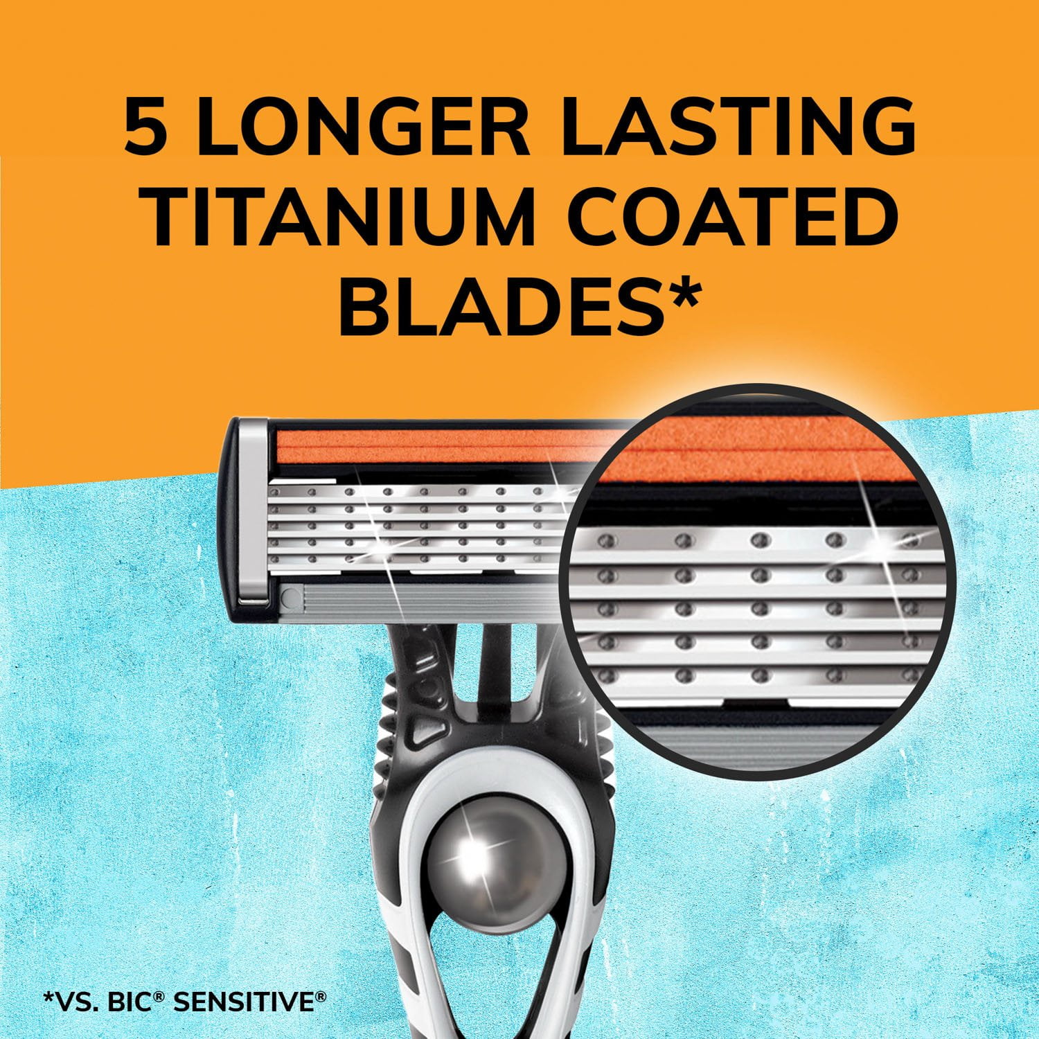 Experience a close, comfortable shave with the Bic Flex 5 Titanium-Coated Disposable Razor for Men. Featuring five ultra-thin flexible blades that are titanium coated, these shaving razors offer added durability and longer-lasting* use. Each razor has a lubricating strip enriched with aloe and vitamin E for enhanced glide, as well as a precision edging blade that helps you reach tricky spots.