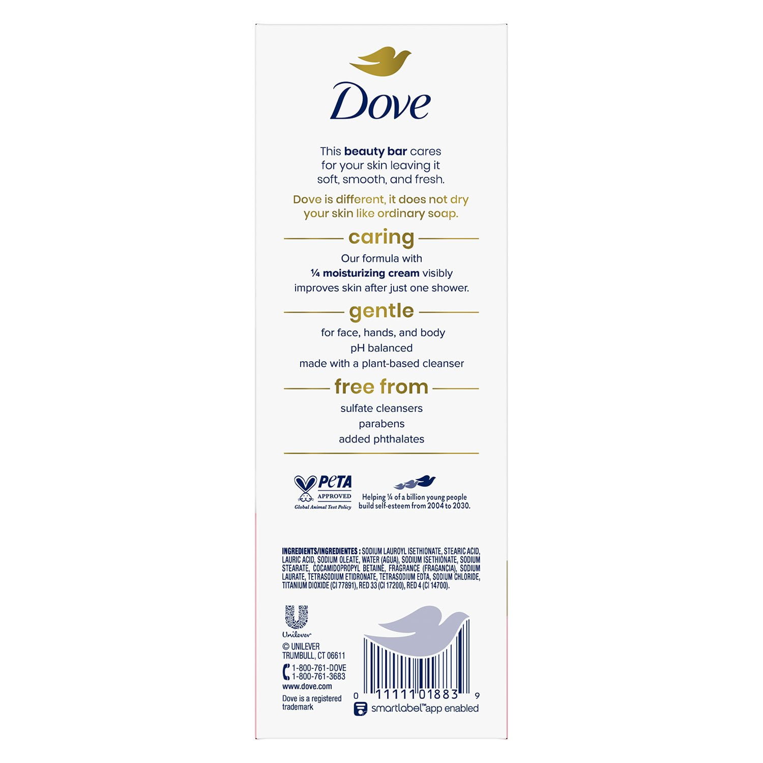 Dove Pink Beauty Bar is designed to elevate your skin cleansing routine into an act of beauty. With a delicate blush of color, this beauty bar adds a touch of feminine sophistication to your bathroom. Formulated with 1/4 moisturizing cream, it nourishes your skin as you cleanse, leaving it feeling soft and cared for.