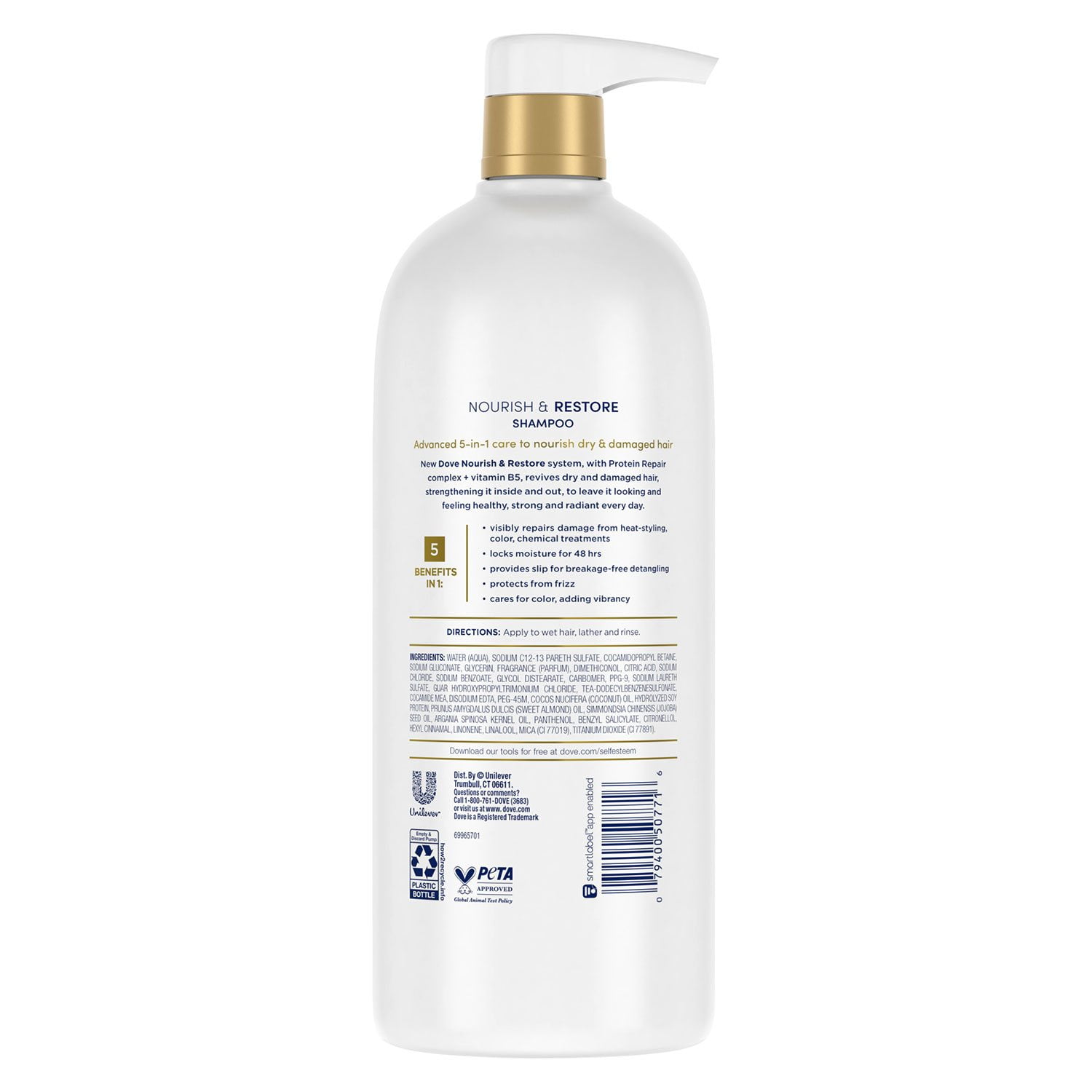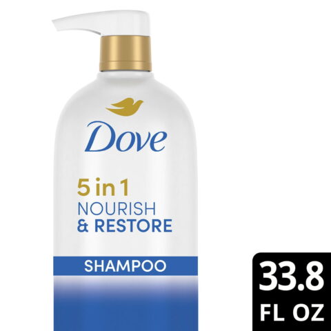 • Package includes one 33.8 fl. oz. bottle of Dove Nourish & Restore 5-in-1 Shampoo