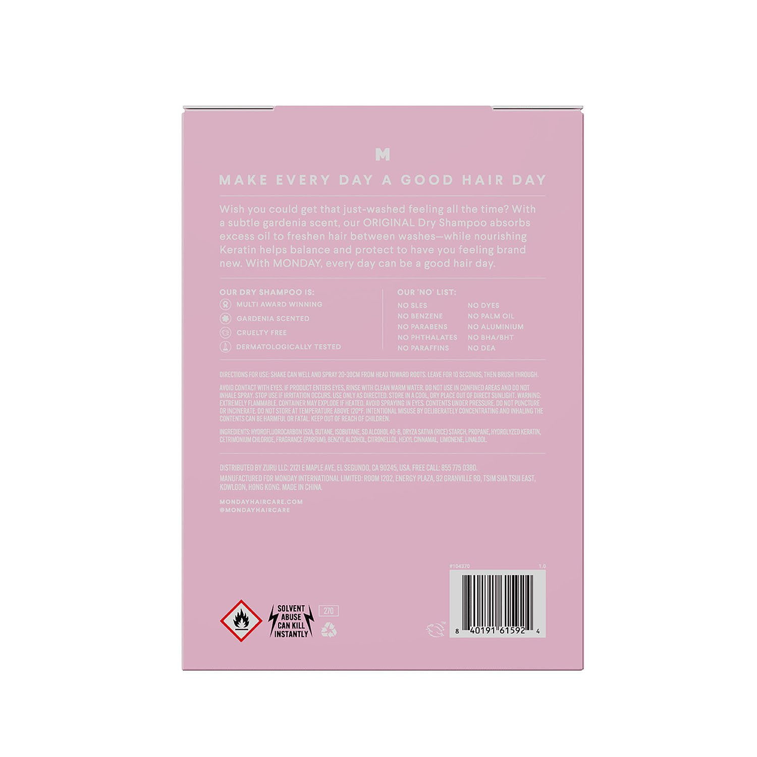 MONDAY Haircare’s ORIGINAL Dry Shampoo is designed to keep your hair feeling fresh and clean between washes. Infused with a delicate gardenia fragrance, this dry shampoo absorbs excess oil, leaving your hair refreshed and revitalized.