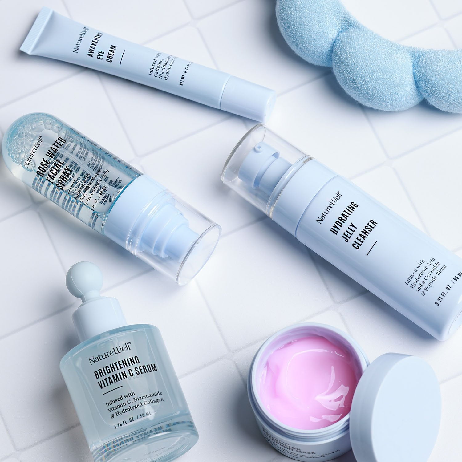 The Glow Edition Skin Care Set by NatureWell is a comprehensive solution for nourishing and caring for your skin. This thoughtfully curated set is designed to provide hydration and effective ingredients that promote radiant-looking skin. Perfect for starting and ending your day with a glowing complexion.