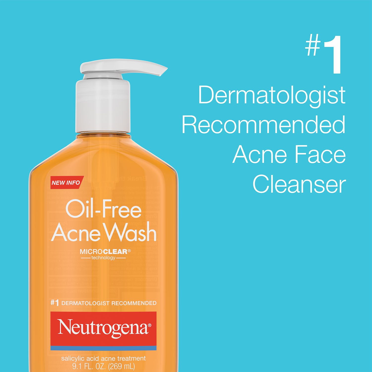 Neutrogena Oil-Free Acne Wash is the #1 dermatologist recommended acne-fighting facial cleanser. This daily acne face wash contains 2% salicylic acid acne medication and is formulated in a convenient 9.1 fl. Oz. bottle to gently clean deep into pores for clearer skin and even helps treat acne before it emerges.