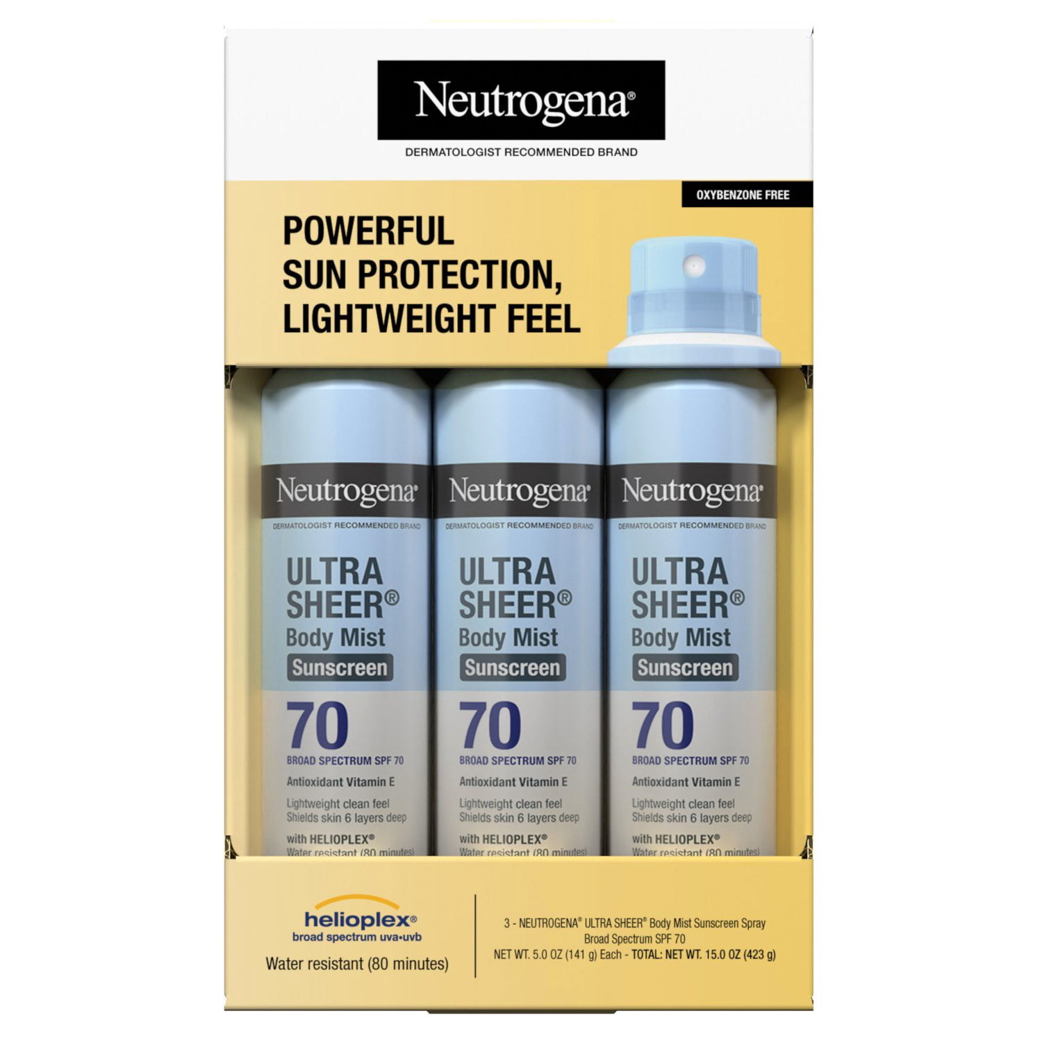 • 3-pack Neutrogena Ultra Sheer SPF 70 Sunscreen Spray, 5 oz. each