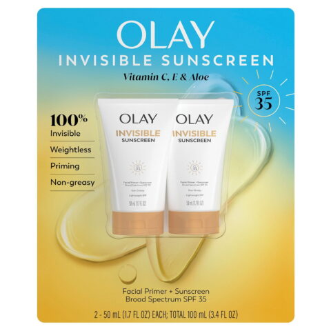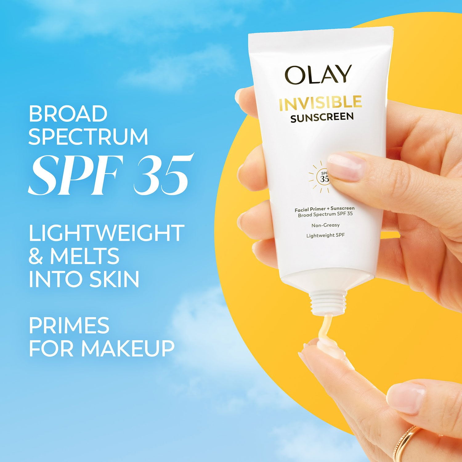 Prime and protect your skin for the day with Olay Invisible Sunscreen, the face sunscreen with makeup primer. Our 2-in-1 sunscreen and makeup gripping primer protects your skin against UV rays with a broad spectrum SPF35 while priming it with a lightweight matte finish for makeup gripping.