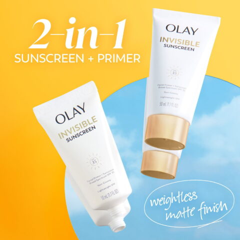 You can pair your Invisible face sunscreen with your favorite Olay face serum and face moisturizer, making it the ideal complement to your daily makeup routine. Get the perfect everyday prime-and-protect duo for your skin with Olay Invisible Sunscreen.