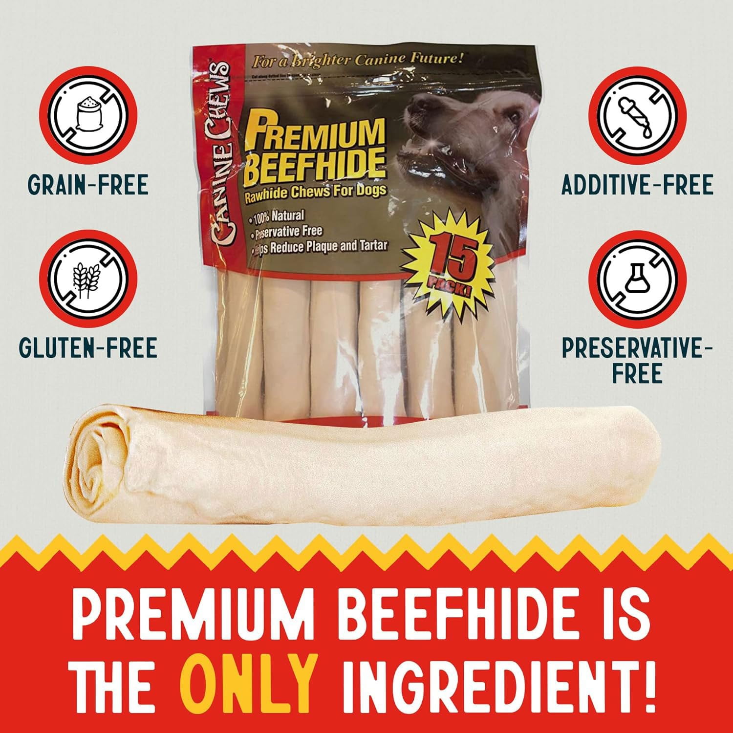 Canine Chews™ Premium All-Natural Beef Hide Canine Retrievers will keep your four-legged friend happy. These large rawhide bones are ideal for play, exercise and everyday chewing.