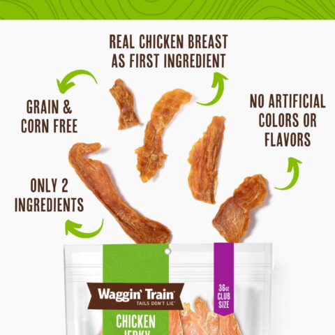 Show your dog how much you care! Waggin’ Train Chicken Jerky Tenders adult dog treats give your furry- riend the simple goodness he needs for maintaining his health and well-being. You won’t have to feel guilty about giving your dog a snack when you choose these chicken jerky dog treats because they do not contain any corn or grains.