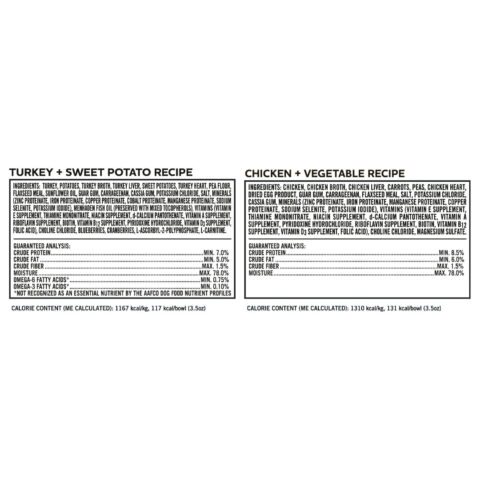 Give your dog a healthy and flavorful meal with the Member’s Mark Pate Style Dog Food. This variety pack comes with 12 – 3.5 oz. bowls of Turkey and Sweet Potato, and 12 – 3.5 oz. bowls of Chicken and Vegetable dog food, designed to meet all the dietary needs of your small breed dogs.