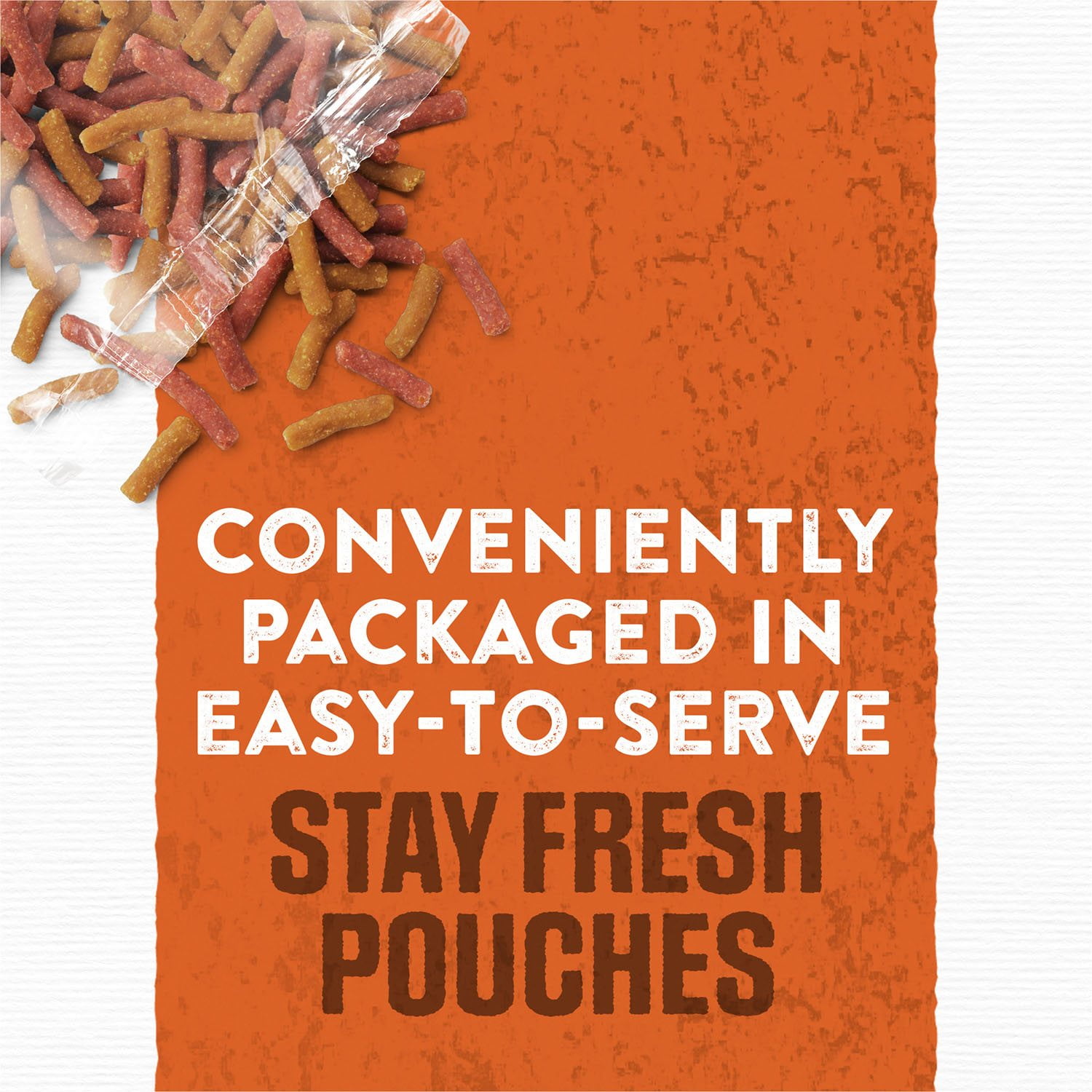 For your dog, every day is an adventure just waiting to happen, so it’s essential that they’re fueled with 100 percent complete and balanced soft dry dog food for adult dogs like Purina Moist and Meaty Dog Food Burger With Cheddar Cheese Flavor. Whether you feed them this moist dog food recipe as a meal, treat or as dog food toppers, your dog will be thrilled every time you pop open one of these Purina Moist and Meaty dog food pouches. With its meaty beef dog food and cheddar taste flavor that will make them think it’s right off the grill and tender texture that’s easy to sink their teeth into, this soft dry dog food will get your dog’s tail wagging at any time of the day. Serve up the smiles with the soft and meaty texture of Purina Moist and Meaty Dog Food Burger With Cheddar Cheese Flavor.