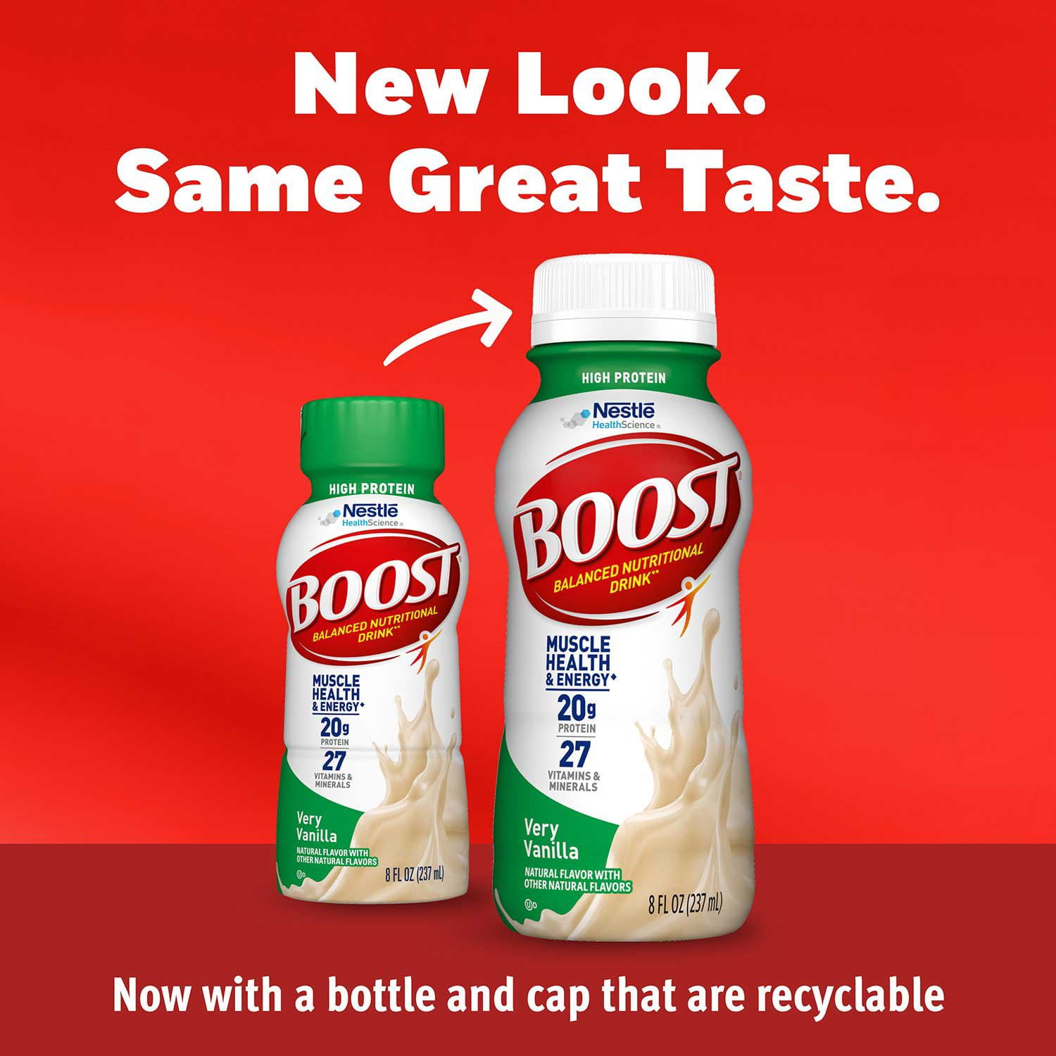 With places to go and memories to make, nutritional gaps shouldn’t get in the way. Very Vanilla flavored BOOST High Protein Nutritional Drink is a high protein nutritional shake that provides essential nutrients as part of a balanced diet. This vanilla high protein nutritional drink provides 27 vitamins and minerals and 20 grams of protein per serving to help maintain muscle. Not only does this high protein drink provide 20 grams of high-quality protein, but it is also designed to provide nutritional energy with 250 nutrient-rich calories and B-vitamins to help convert food to energy. BOOST High Protein Nutritional Drink, Very Vanilla flavor has a delicious vanilla taste you’ll love and 100% more protein than BOOST Original drinks (20 grams of protein in BOOST High Protein drink vs. 10 grams in BOOST Original drink). This pack includes 28 – 8 FL OZ ready to drink resealable bottles that are portable and easily stored. They are gluten free and contain no artificial colors, flavors or sweeteners. As a balanced nutritional drink or mini-meal, BOOST High Protein Nutritional Drink, Very Vanilla flavor is a convenient way to help fuel up and support your active lifestyle.  Help get extra protein you need and reward yourself with the delicious taste of BOOST High Protein Nutritional Drink, Very Vanilla flavor. Whether you want extra protein, less sugar, more calories, fewer calories, or simply great nutrition for everyday living, there is a BOOST nutritional drink that fits your needs!