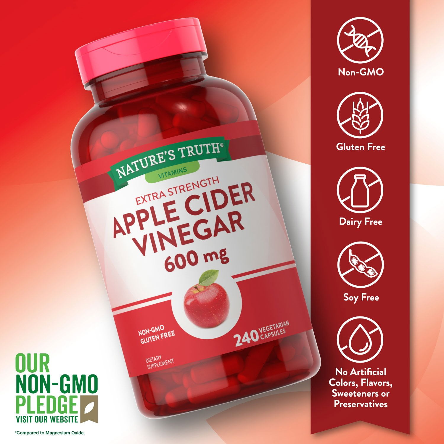 Nature’s Truth is a wellness brand that uses the best ingredients in its vitamins and supplements and one you can rely on for the truth. These Apple Cider Vinegar capsules are vegetarian friendly, non-GMO, and free of gluten, wheat, yeast, milk, lactose, soy, along with artificial colors, flavors, sweeteners, and preservatives. Discover the Nature’s Truth difference for yourself!