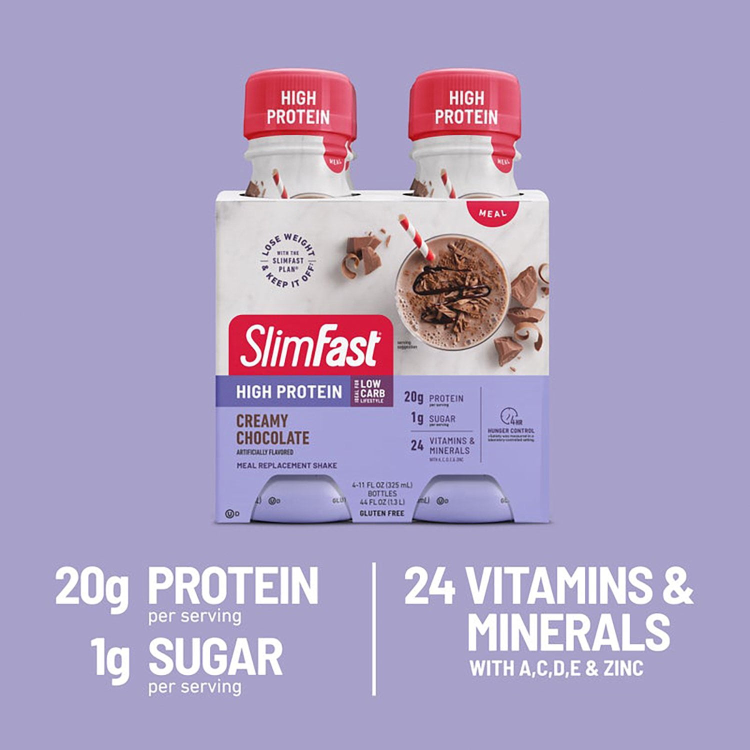 SlimFast Advanced Creamy Chocolate High Protein Ready to Drink Meal Replacement Shakes contain 20 grams of protein. This makes them an ideal protein supplement because they have what our bodies need to build and rebuild muscle.