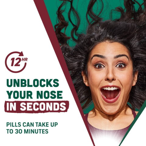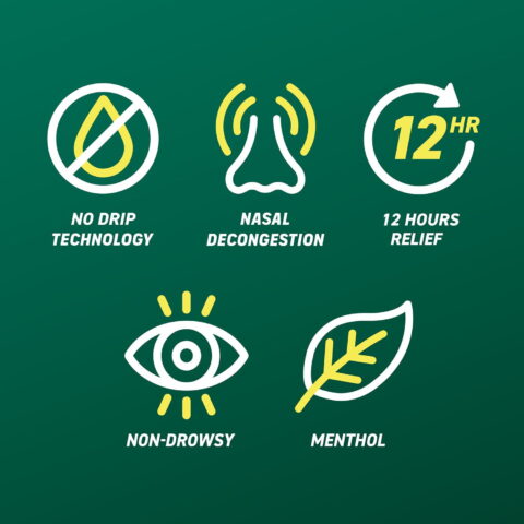 • Medicated 12-hour nasal spray allows easier breathing through the nose without unpleasant dripping down the nose or throat