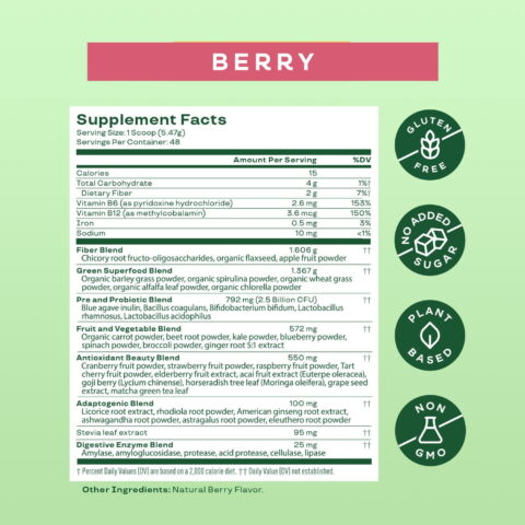 With over a BILLION views on TikTok, Bloom Nutrition Greens & Superfoods are famous for their ability to balance gut health, fight bloat, and promote energy in the most delicious way. Made with 38+ good-for-you ingredients, including fruits & vegetables, digestive enzymes, fiber, probiotics, and more, Bloom Greens are an internet favorite for a reason. Just add one scoop to 8 oz. or more of water, juice, smoothie or you favorite beverage daily.