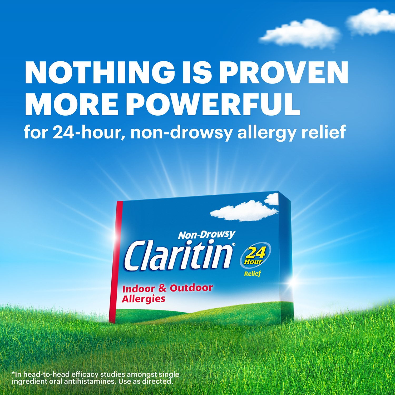 Claritin 24 Hour Non-Drowsy Allergy Medicine Tablets provides allergy relief from indoor allergies caused by pets, dust mites, and mold. We have you covered for outdoor relief too by combatting symptoms caused from pollen, grass, trees, and weeds.
