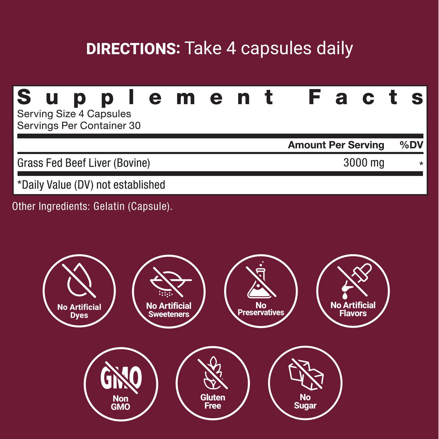 Experience the nutritional power of grass-fed beef liver with a potent 3,000mg dose per serving. Get maximum benefits and results with every capsule.