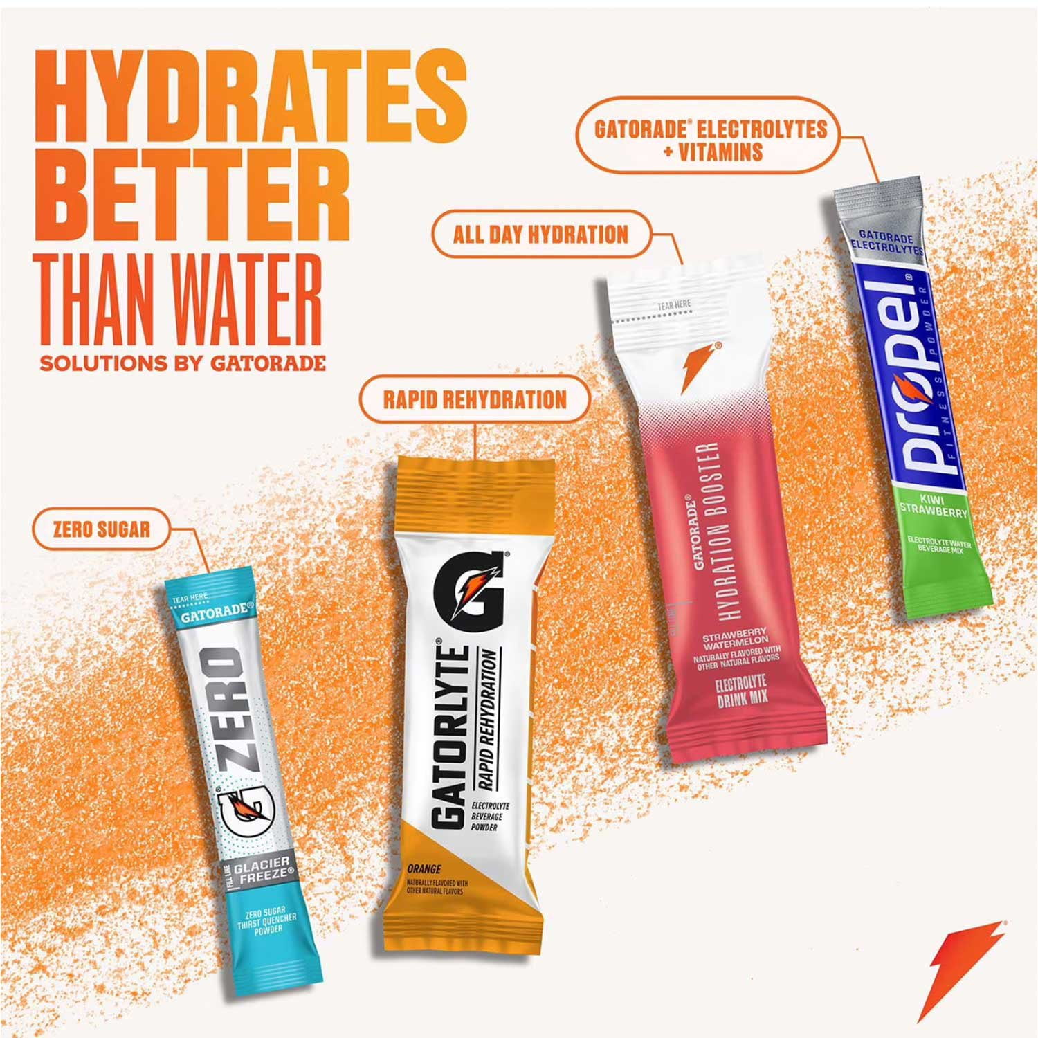 Experience the proven hydration and fueling benefits of Gatorade Thirst Quencher, but without the sugar. Gatorade Zero is expertly formulated to replenish more than just water, addressing the losses in fluids and electrolytes that can negatively impact performance. This beverage is packed with critical electrolytes that help replace what you lose in sweat.