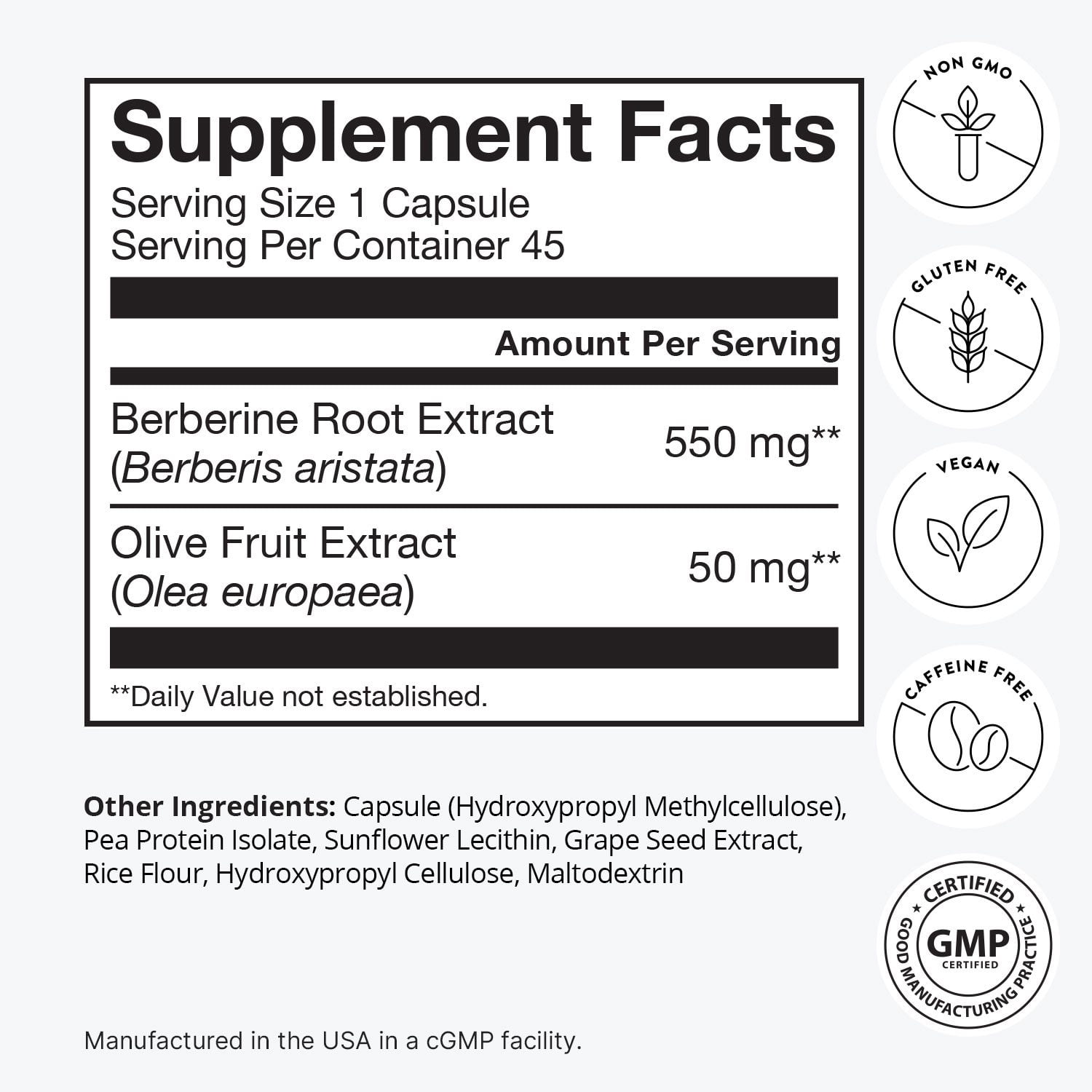Higher absorption allows for a more concentrated dose than standard berberine capsules at a more concentrated, but lower dose.