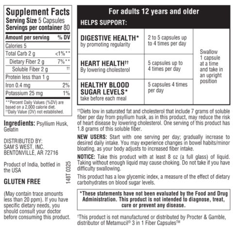 Whether you’re aiming to improve digestive regularity, manage blood sugar levels, or support heart health, Member’s Mark 100% Psyllium Husk Fiber Capsules offer a versatile solution. Made from natural ingredients and trusted for their efficacy, these capsules are a valuable addition to your health regimen.