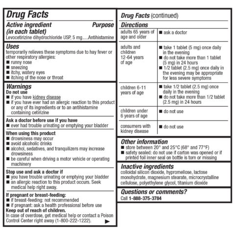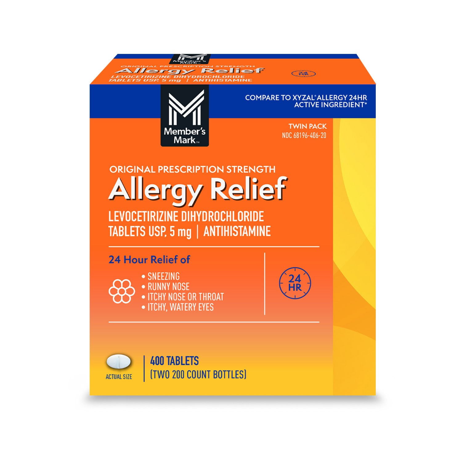 Member’s Mark™ Levocetirizine DiCHl Tablets USP, 5 mg is a powerful antihistamine that provides effective relief from both indoor and outdoor allergy symptoms. When taken as directed, this product offers up to 24 hours of relief, ensuring you can carry on with your day without the burden of allergy symptoms.
