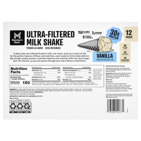 Member’s Mark Ultra-Filtered Milk Shake, Vanilla, 11.5 fl. oz., 12 pk.