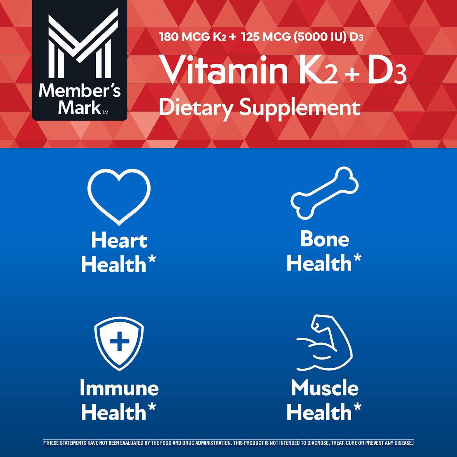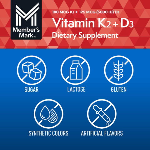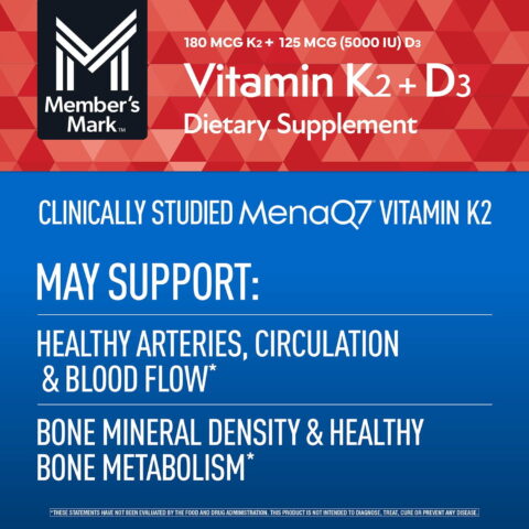 Experience these benefits by taking the Member’s Mark Vitamin K2 + D3 Softgels.