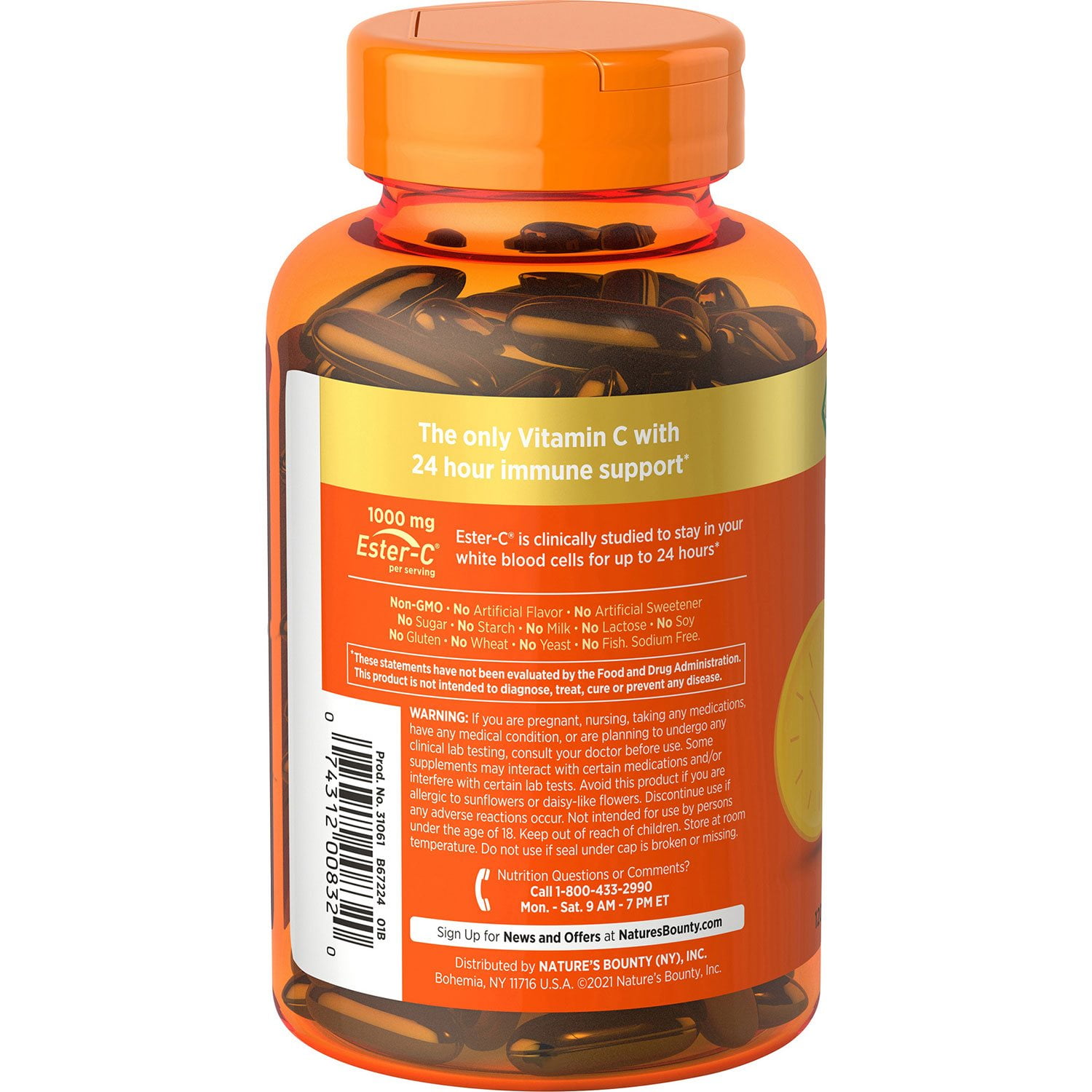 Nature’s Bounty Immune 24 Hour + with Ester-C Vitamin C provides advanced, long-lasting immune support to help keep you healthy.* With 1,000mg of clinically studied Ester-C, it’s the only Vitamin C that stays in your white blood cells for up to 24 hours, providing immune support around the clock.*