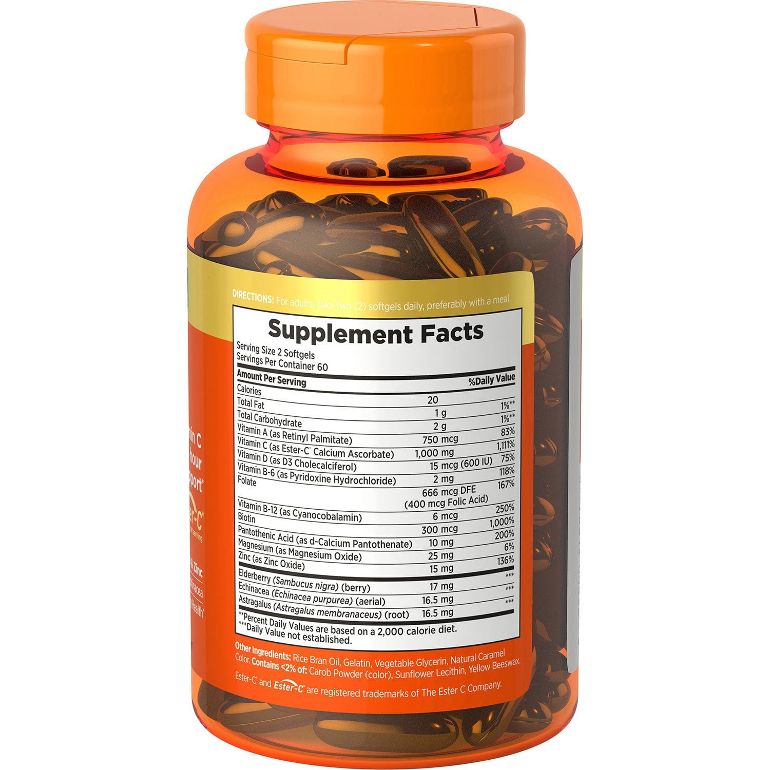 The vitamin C 1000mg supplement also includes herbal ingredients elderberry and echinacea, plus 9 essential nutrients for your overall health.* *These statements have not been evaluated by the Food and Drug Administration. These products are not intended to diagnose, treat, cure, or prevent any disease. Ester-C is a registered trademark of the Ester-C Company