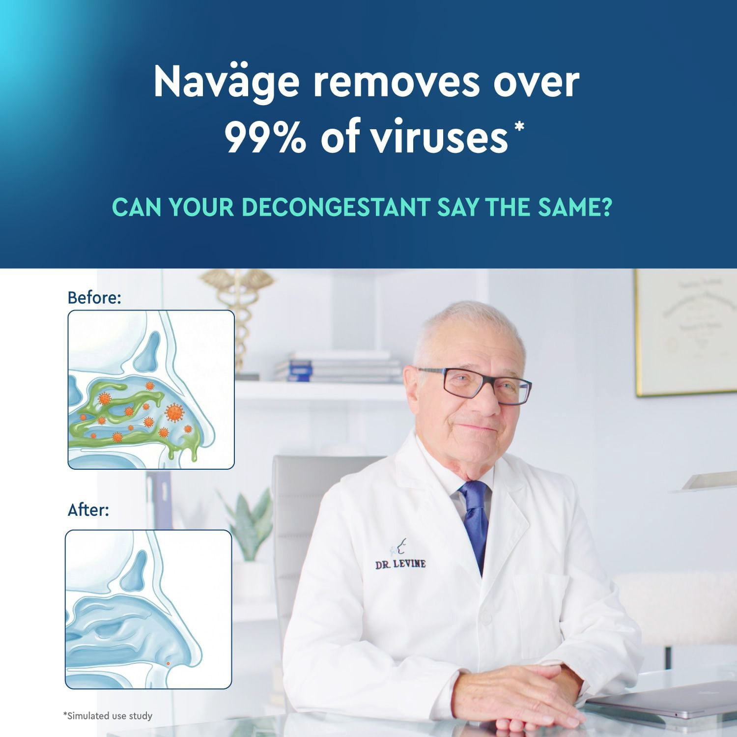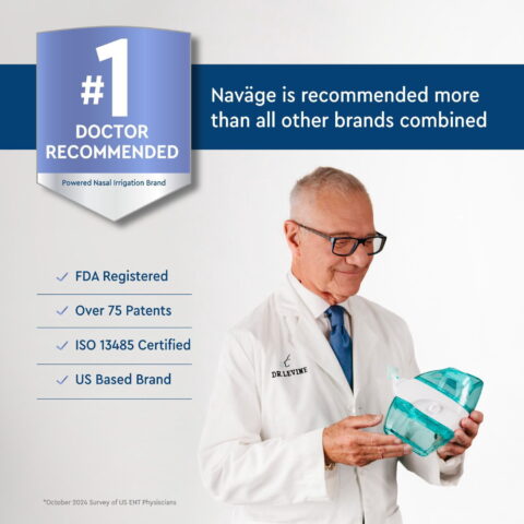 Naväge removes over 99% of viruses while flushing out allergens and thick mucus and is recommended by doctors more than all other powered nasal irrigation brands combined.
