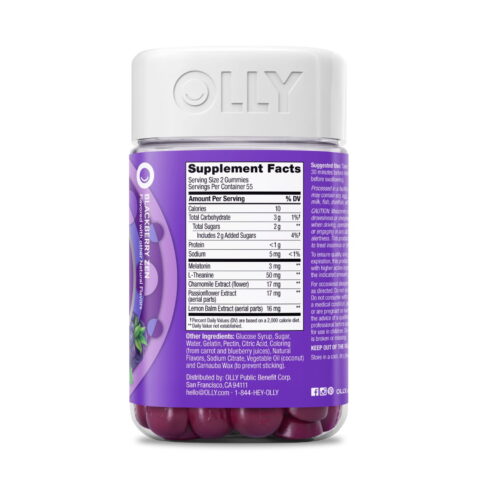 OLLY Sleep gummies are naturally flavored with Blackberry and a hint of mint, providing a delicious taste that makes taking your vitamins a treat. These Sleep gummy vitamins not only help you drift off to sleep but also delight your taste buds. What’s more, they’re scientifically formulated and gluten-free, making them suitable for various dietary needs.
