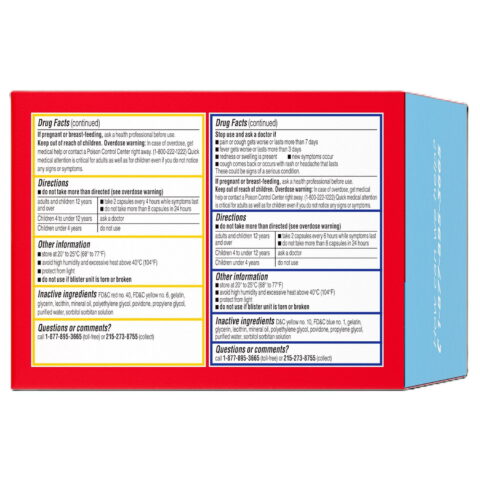 Follow the directions carefully to ensure safe and effective use. Do not take the day and night caplets simultaneously or exceed a total of 10 caplets within a 24-hour period. This medication is intended for adults and children aged 12 years and older. For children under 12 years, consult a doctor before use. Store the product between 20-25 degrees C (68-77 degrees F) and avoid using it if the carton or blister unit is open or torn.