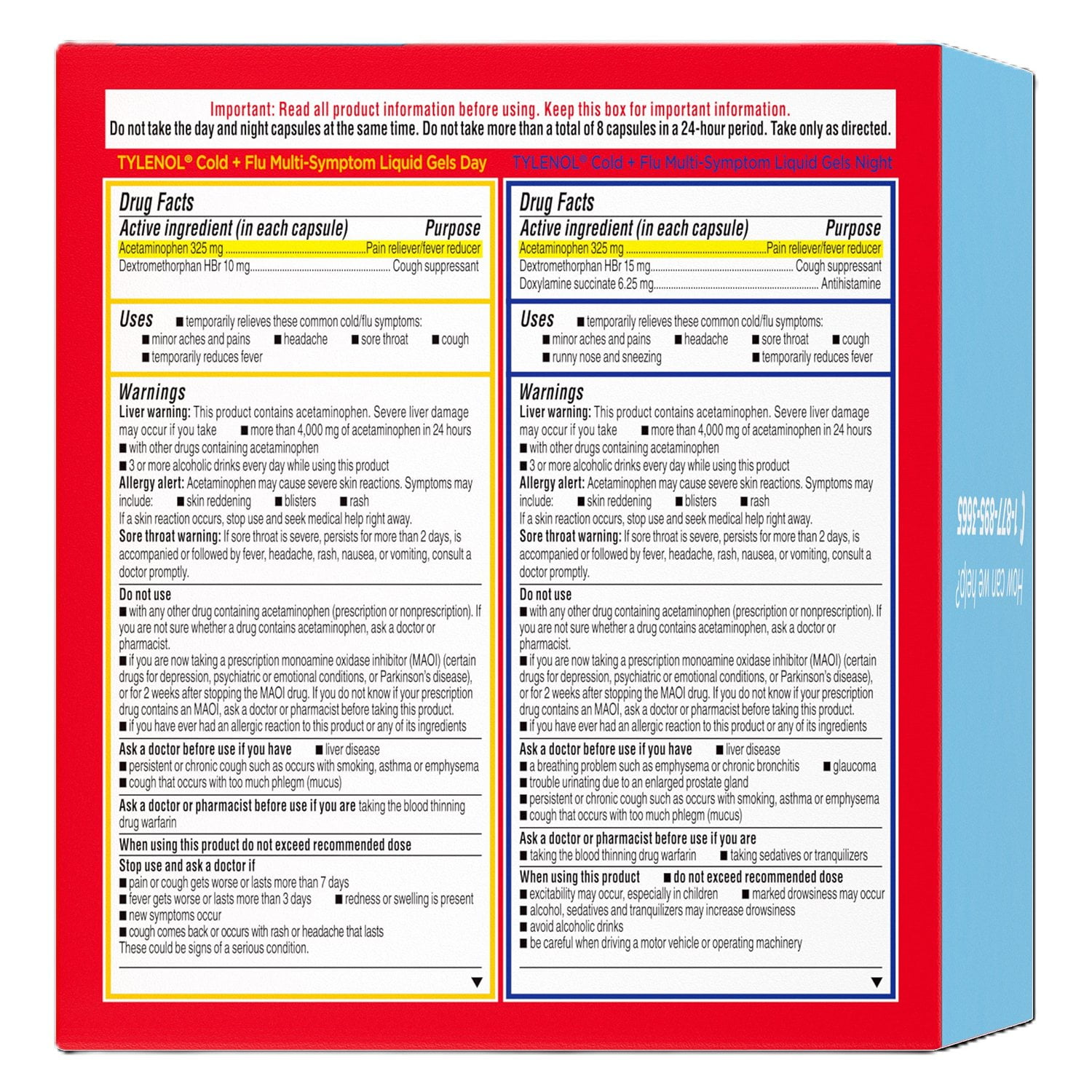 Always read the product information thoroughly before use and retain the box for reference. Adhere to the recommended dosage and usage guidelines to avoid potential overdose risks. Tylenol Cold + Flu Severe Day and Night Caplets are a reliable solution for managing cold and flu symptoms, helping you feel better and get back to your routine.