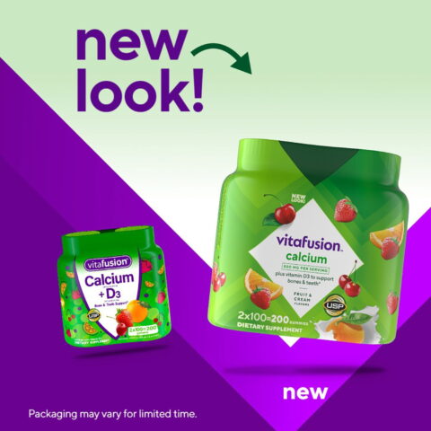 vitafusion Calcium Gummy Vitamins are daily dietary supplements that offer a fusion of essential nutrients in a delicious fruit-and-cream flavored gummy. Each two-gummy serving is packed with 500 mg of Calcium and 1,000 IU of Vitamin D3, supporting bone and teeth health. Enjoy the equivalent calcium content of two 6 fluid ounce glasses of milk in just two chewable gummies.