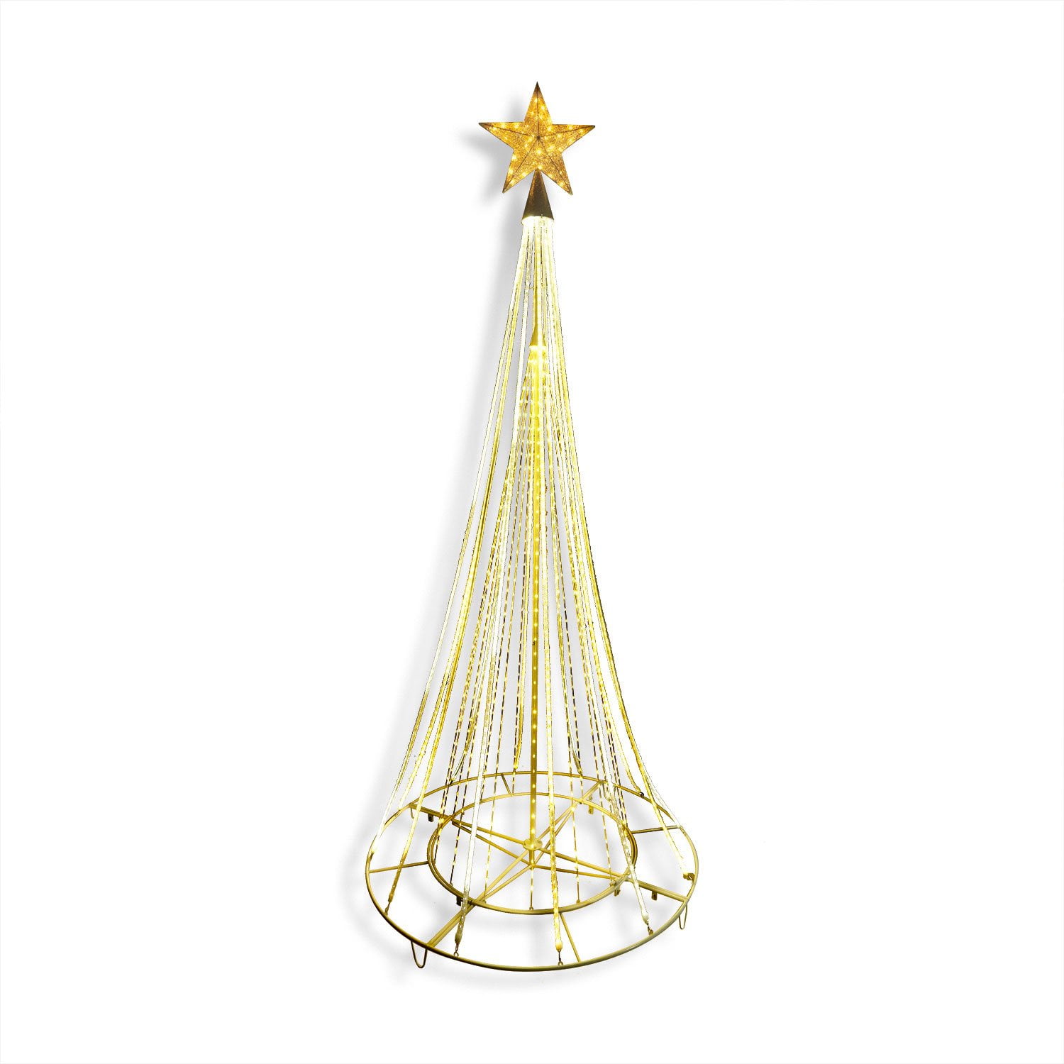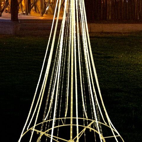 Designed for both indoor and outdoor settings, this 10′ shooting star tree includes four yard stakes for stability in your yard. A 5-foot lead cord with a UL-approved plug provides flexibility for placement, making it perfect for porches, entryways, or party spaces.