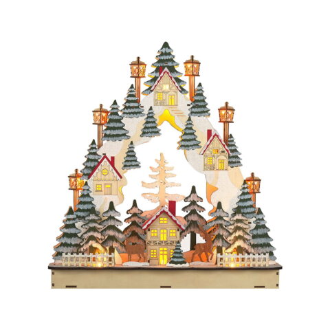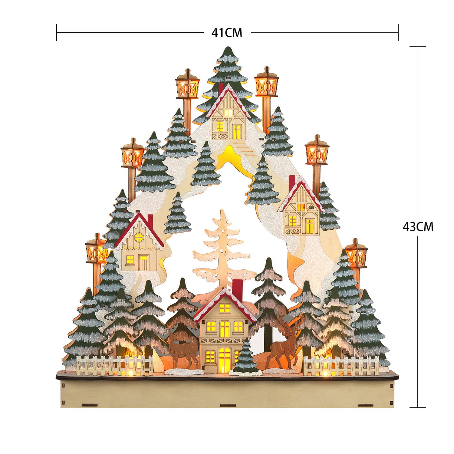 Designed with 15 warm flickering LED lights, this village scene offers effortless evening enchantment. The built-in timer function ensures the lights automatically turn off after 6 hours and turn on again after 18 hours, making it a hassle-free addition to your holiday décor.