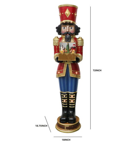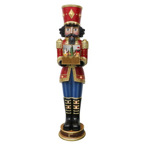 This grand nutcracker holds a musical toy box with moving parts, playing eight classic Christmas songs to fill your space with joyful holiday melodies. Perfect for creating a warm and inviting atmosphere, it combines visual beauty with enchanting sounds.