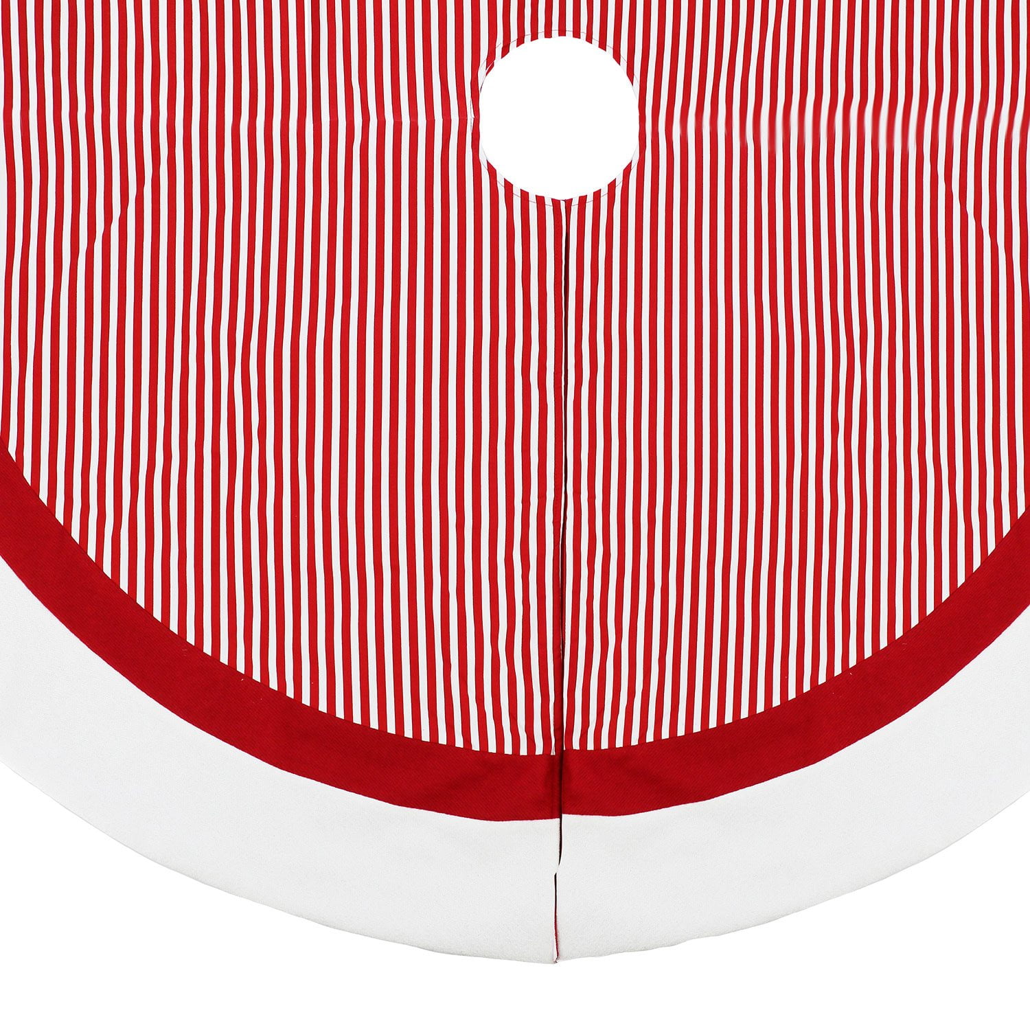 If you’re aiming for a contemporary yet timeless look, the red-and-white striped tree skirt with a plush border is an excellent choice. The elegant contrast of stripes and neutral trim offers a sophisticated touch that pairs beautifully with both vibrant ornaments and chic neutral themes. This versatile design ensures your tree stands out in style.