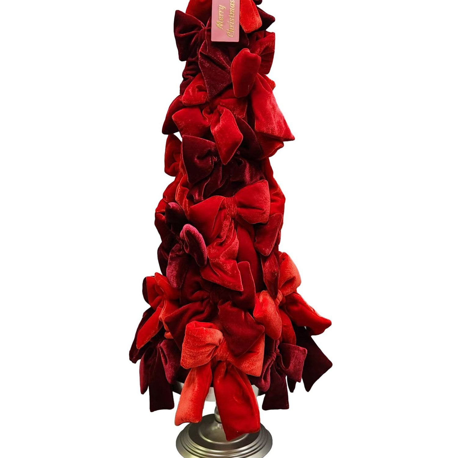 Make a bold statement this holiday season with the Member’s Mark 32.5″H Bow Tree, exclusively available at Sam’s Club. This stunning tree is adorned with luxurious velvet bows in vibrant shades of cherry red and burgundy, expertly layered for a sophisticated yet playful look. Sitting atop a classic silver pedestal, the tree is crowned with a festive red tag that reads “Merry Christmas,” adding a joyful finishing touch to your holiday display.