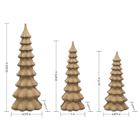 Each tree boasts an intriguing layered, conical shape, adding depth and charm to your holiday display. The set includes three sizes—small, medium, and large—ranging in height from 16.75 inches to 23.625 inches. This variety allows for versatile placement and creative arrangements to suit your space and style.