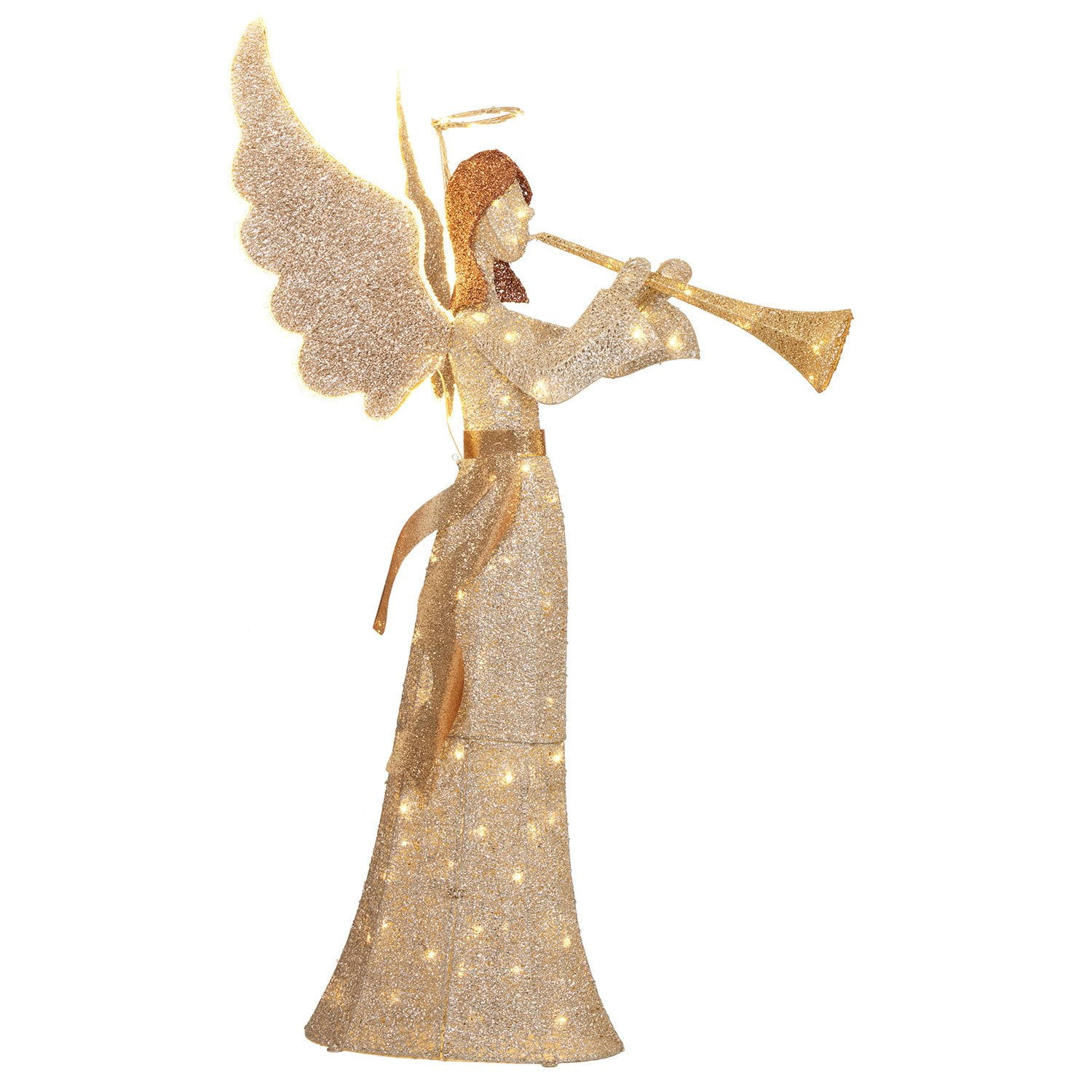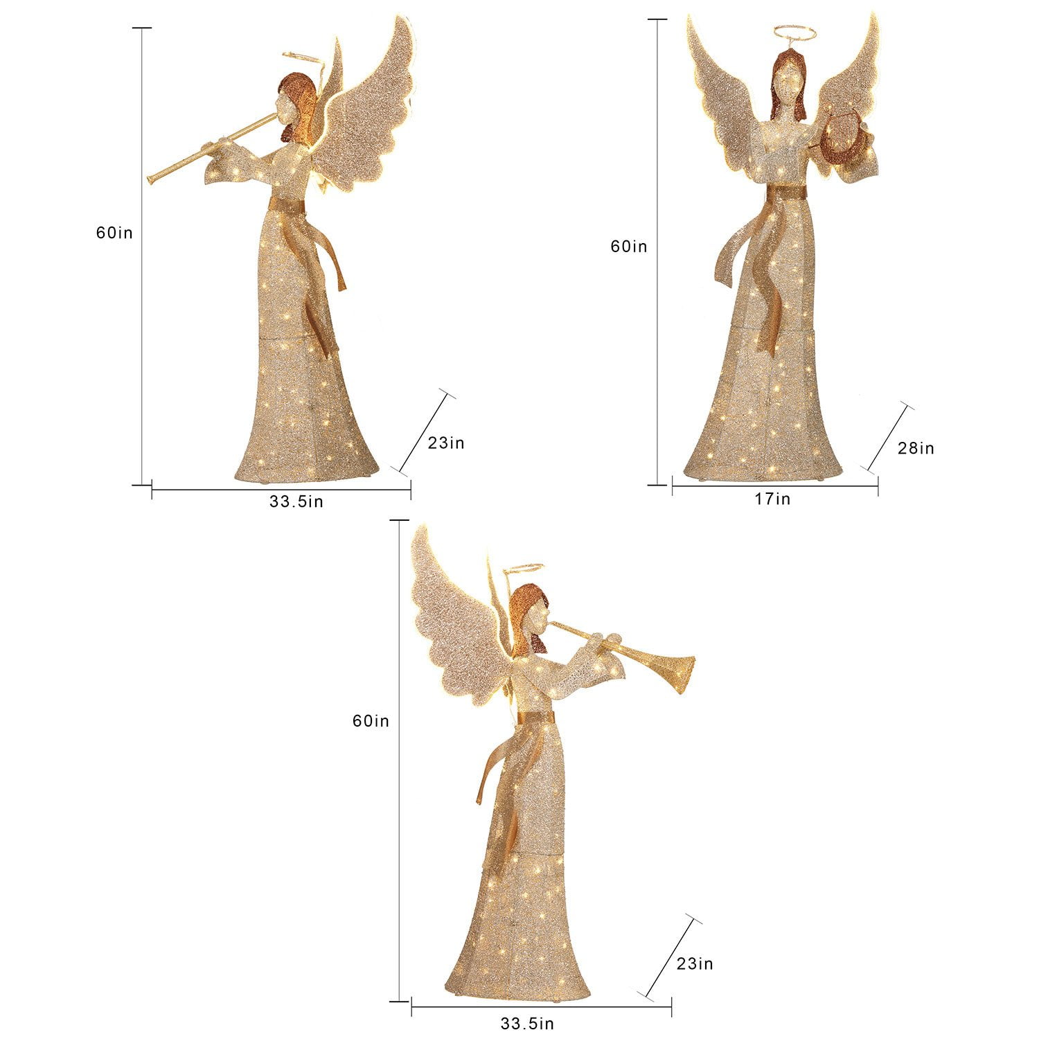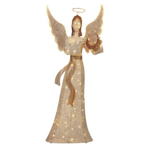 The Member’s Mark Set of 3 Pre-Lit Twinkling Angels is a stunning addition to your holiday decorations, symbolizing hope and joy. Each angel stands 5 feet tall and is adorned with 726 warm white LED lights featuring a twinkle effect, creating a festive and captivating display. Their gold and white glittering thread bodies, along with sashes, halos, and musical instruments—a flute, harp, and trumpet—add a touch of elegance to your seasonal décor.