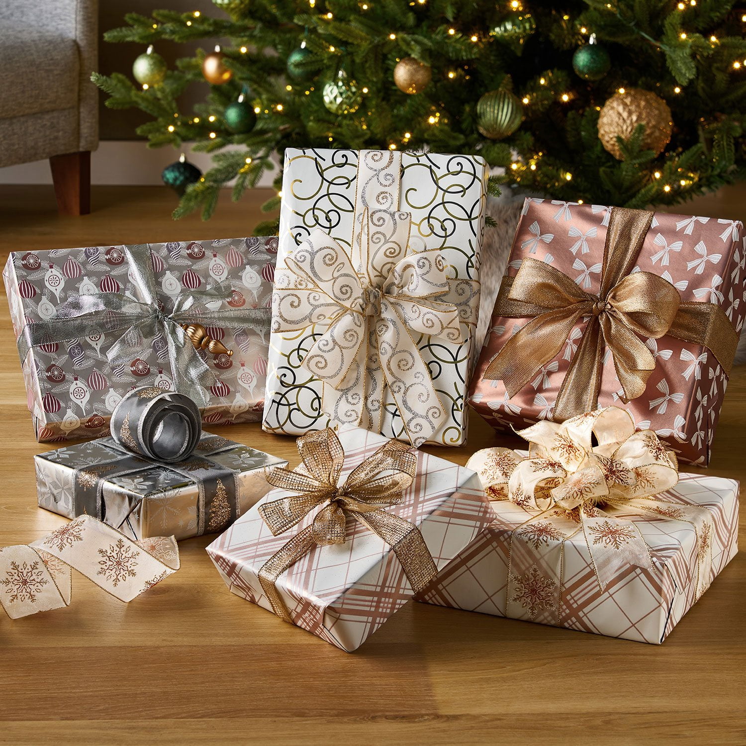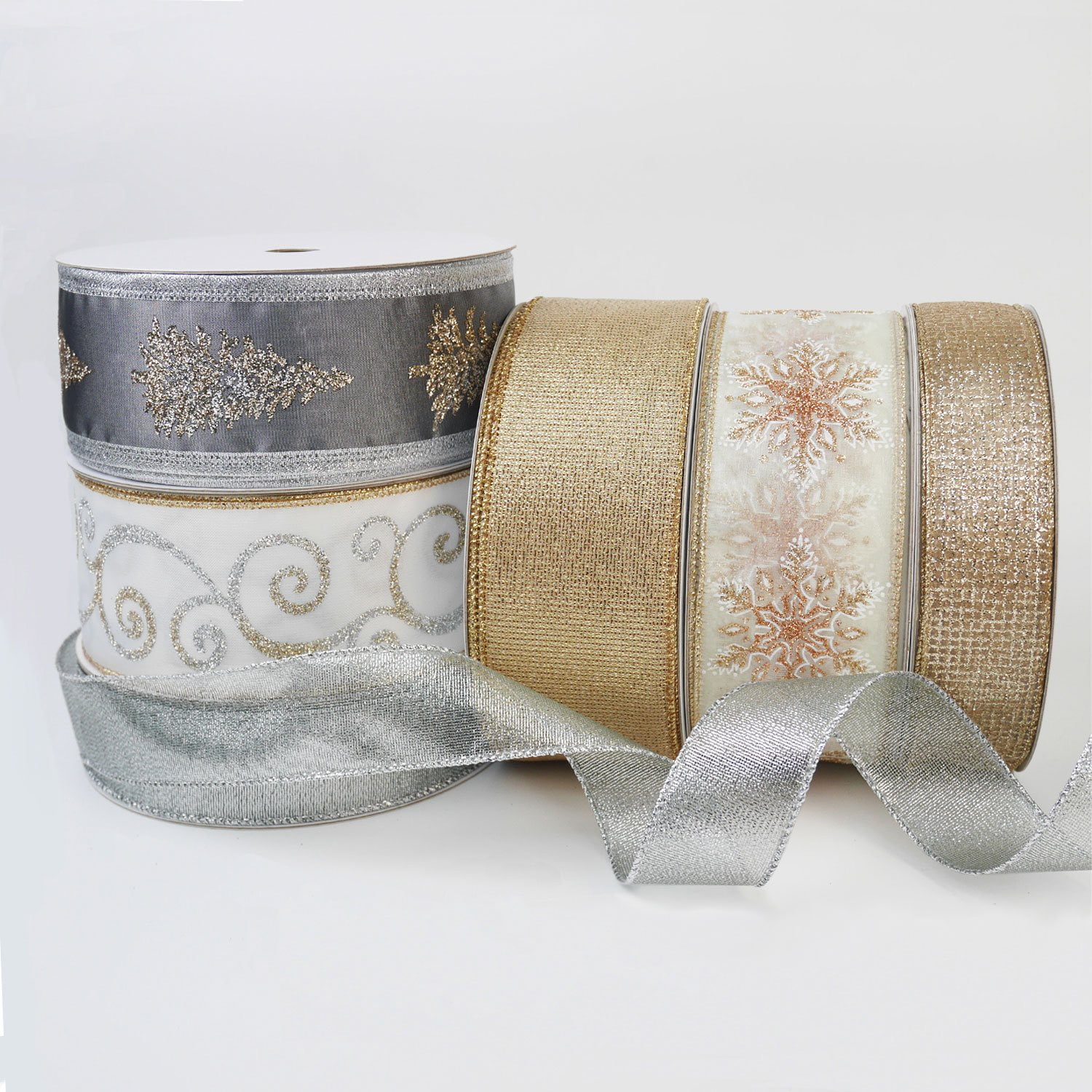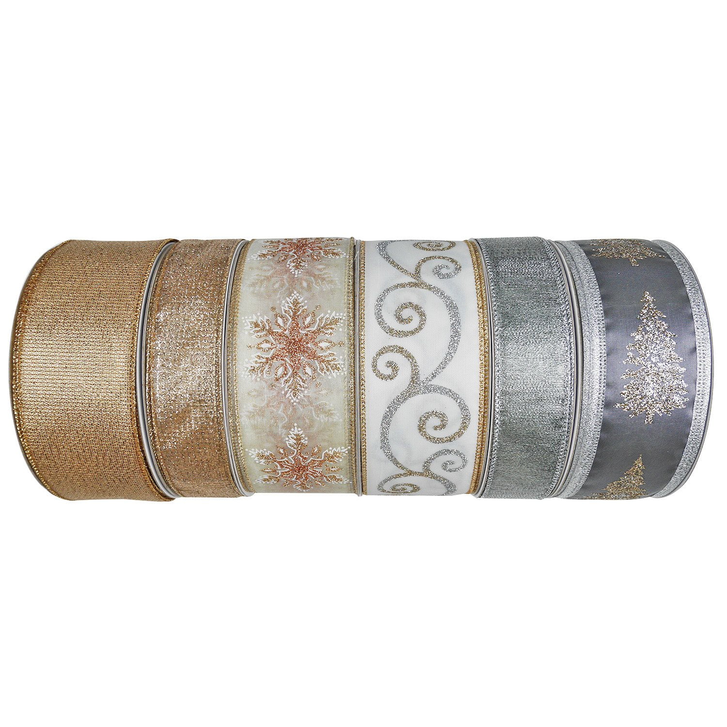 The Member’s Mark Premium Wired Holiday Ribbon features an assortment of six flexible wired-edge ribbons in varying widths, allowing you to create decorative shapes that hold up throughout the holidays. Preferred by designers, these high-grade fabric ribbons have a textural feel as well as special finishes including glitter and metallic accent threads. The quality construction of these ribbons allows you to save and reuse them as many times as you like. Simply wipe the ribbons clean with a soft, dry cloth. Each roll comes with a generous 50 yards of luxurious ribbon, and every six-pack includes four rolls of 2.5-inch ribbons and two rolls of 1.5-inch ribbons. Each themed package features six designs carefully curated to complement each other. Layer different styles, colors, and widths to create high-end looks found in professionally styled settings.