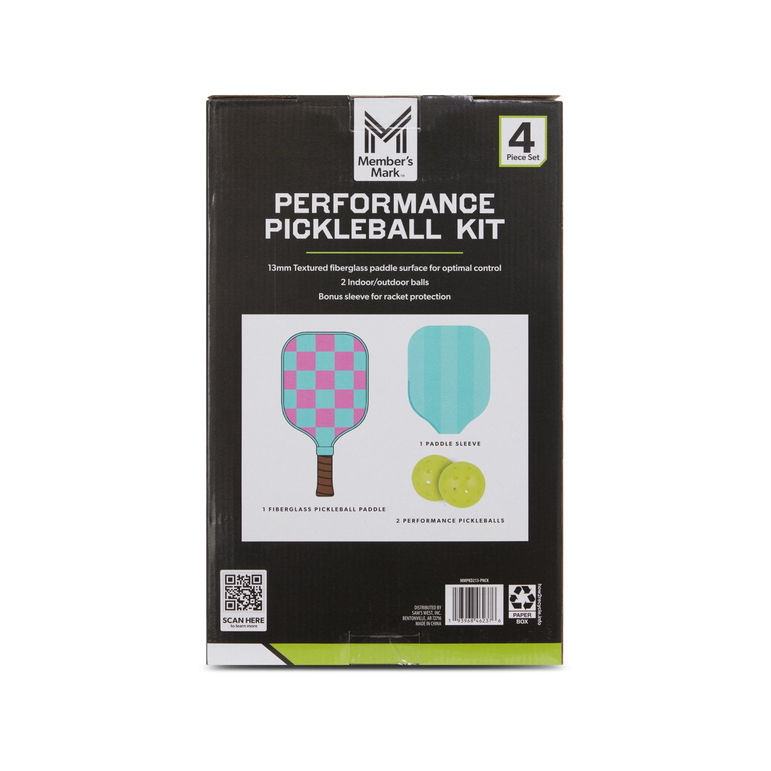 Experience the ultimate pickleball game with the Member’s Mark Performance Pickleball Kit. This kit is designed to cater to both casual and competitive players. The 4-piece set includes a fiberglass paddle with a 13mm textured surface, providing optimal control and durability for powerful and precise shots.